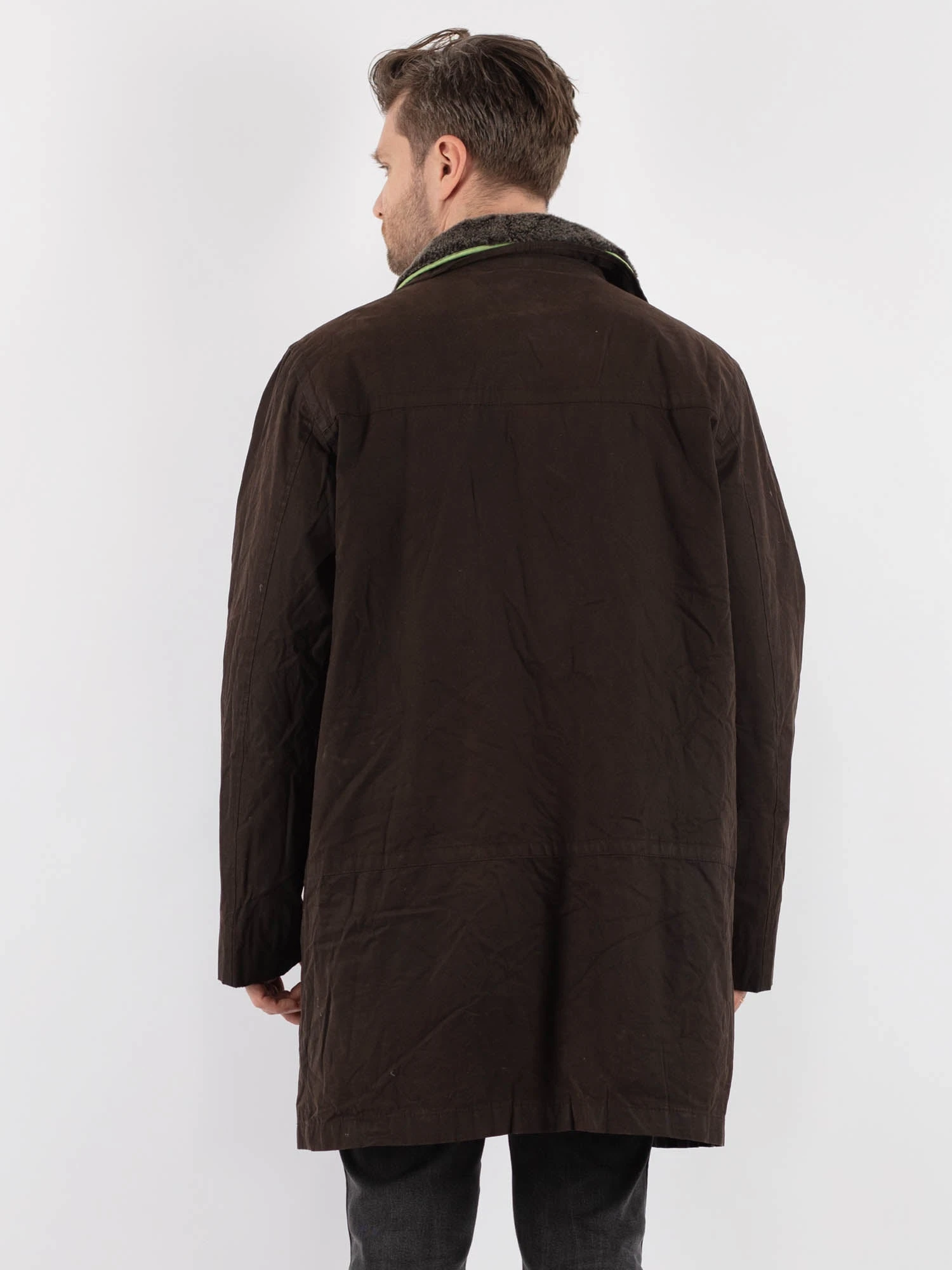 Brown Vintage 00’s Men Waxed Canvas Coat in Brown With Free Delivery