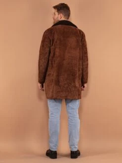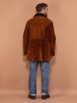 Vintage 00’s teddy sherpa faux suede women’s jacket in brown. Notched collar, two outer patch pockets. No closure. Very soft and snuggly. Made in Italy.