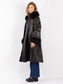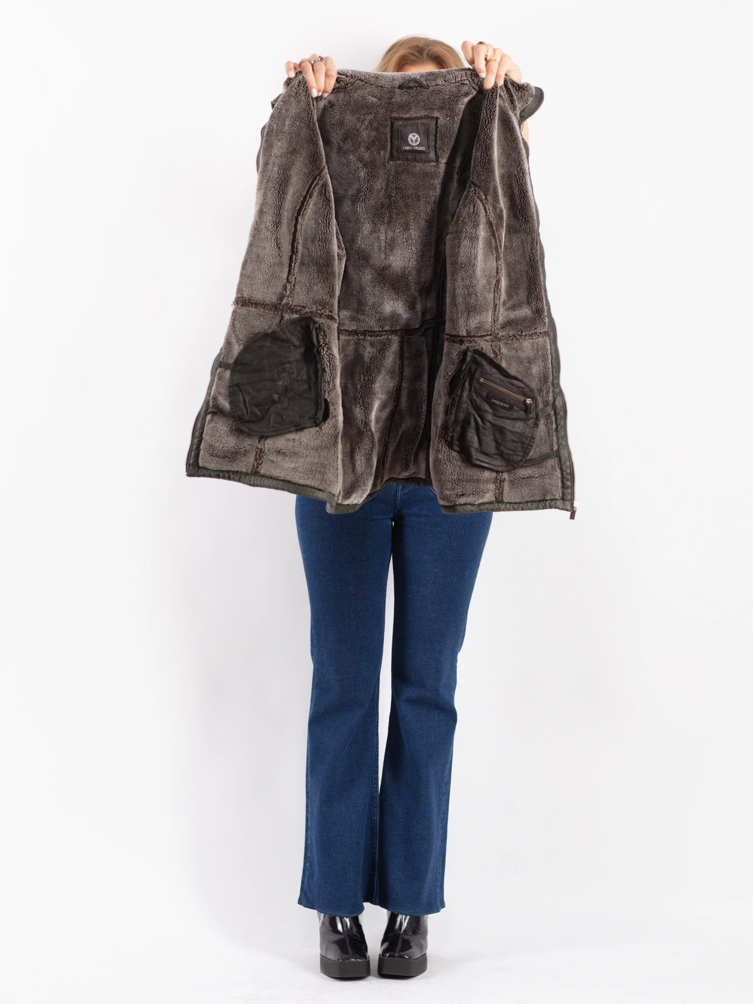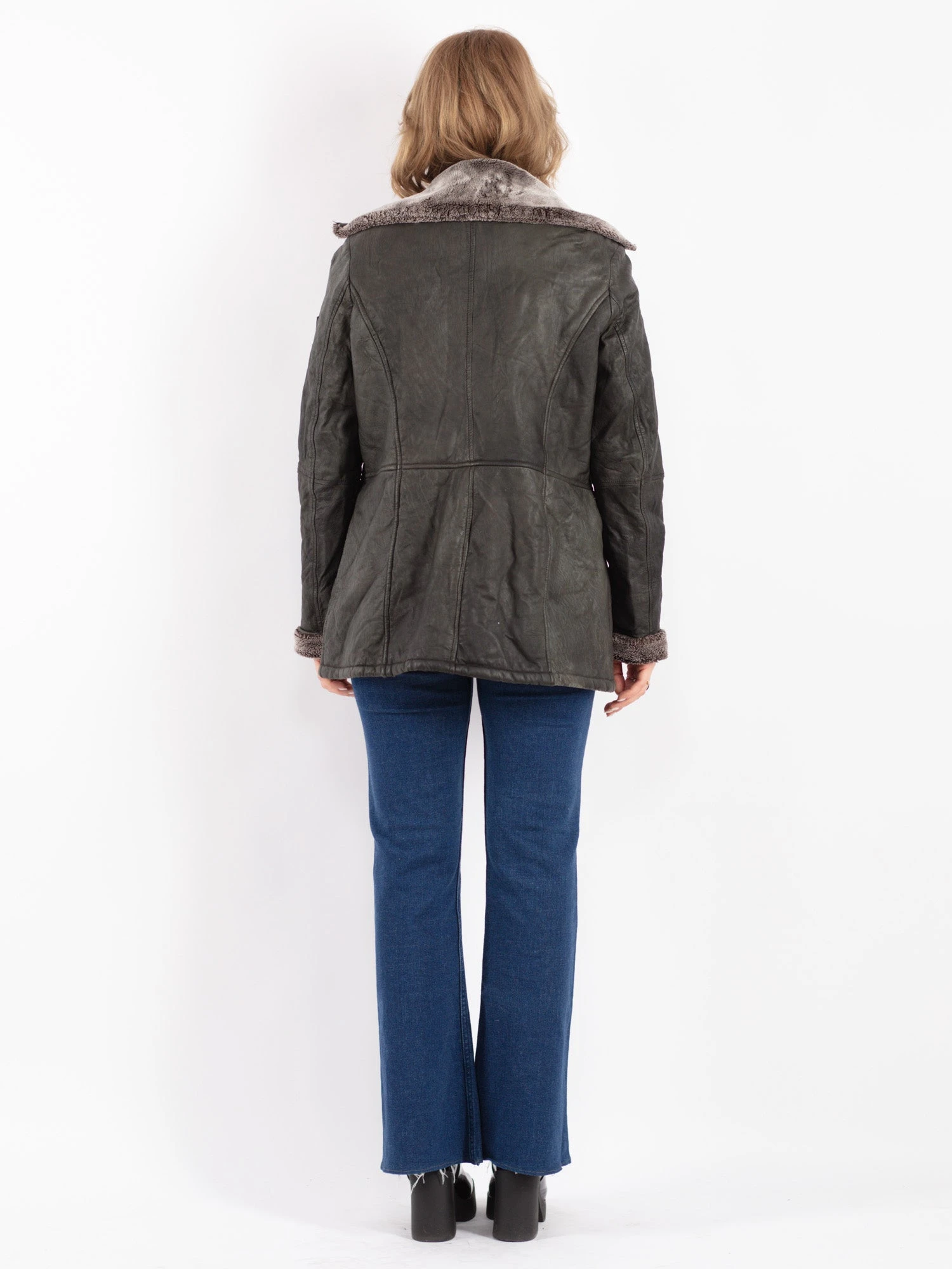 Black Vintage 00’s Women Leather Sherpa Jacket in Black With Free Delivery