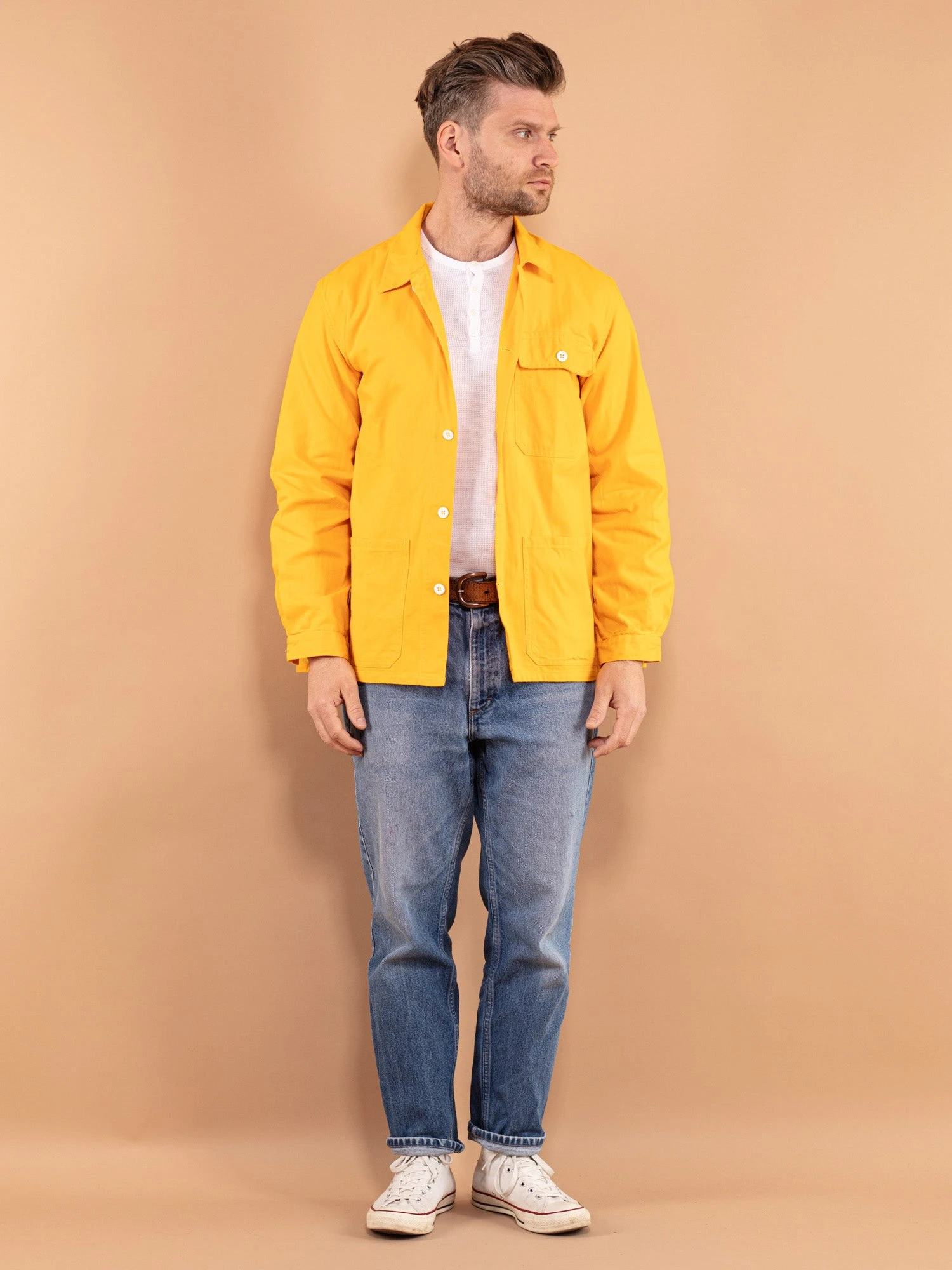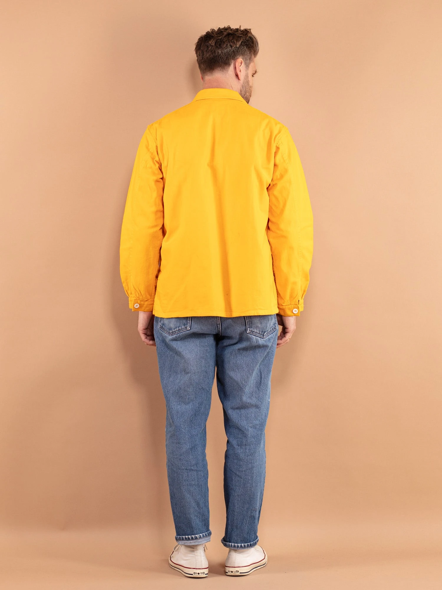 Vintage condition level: 8/10 Showing a few oil spots around the hemline, pockets, and cuffs. The jackets has more of an orange colour in a natural lightning.