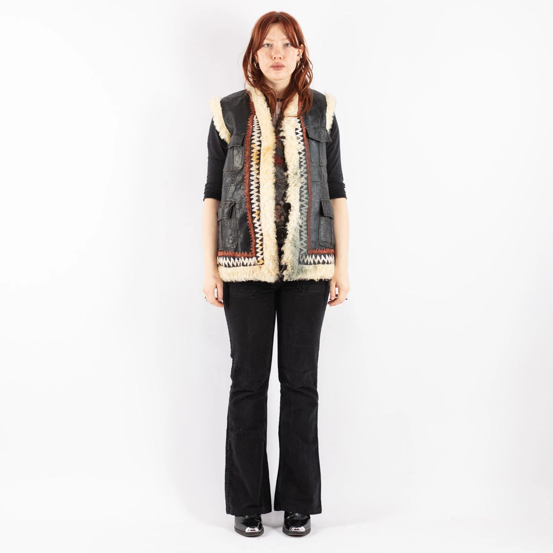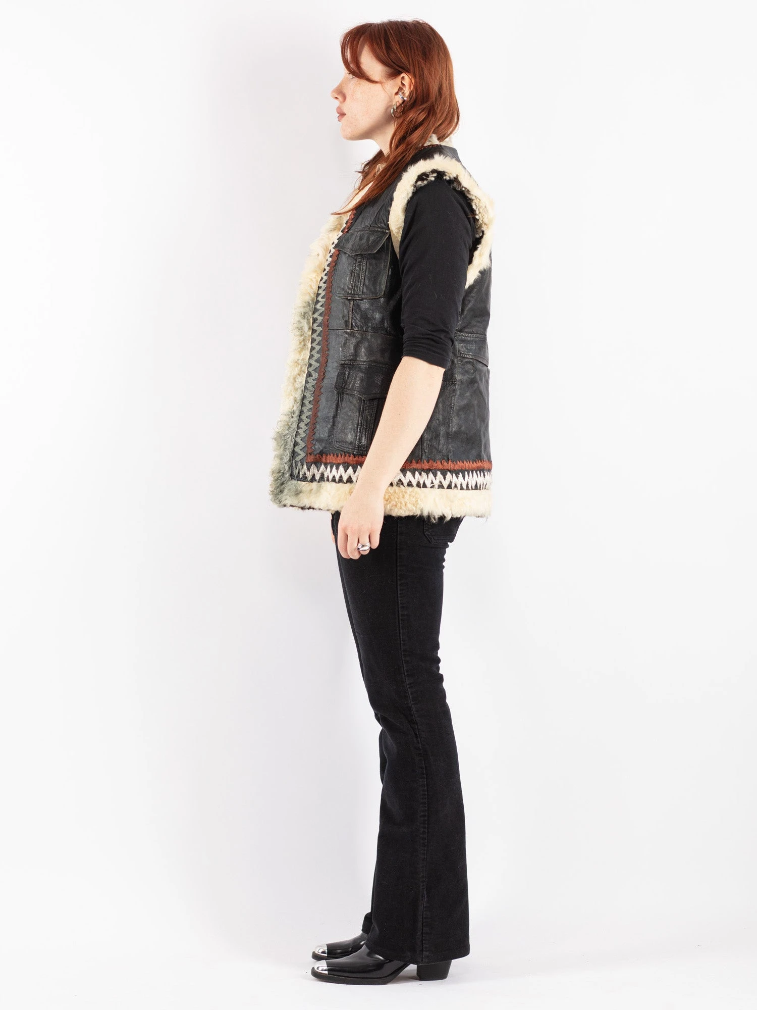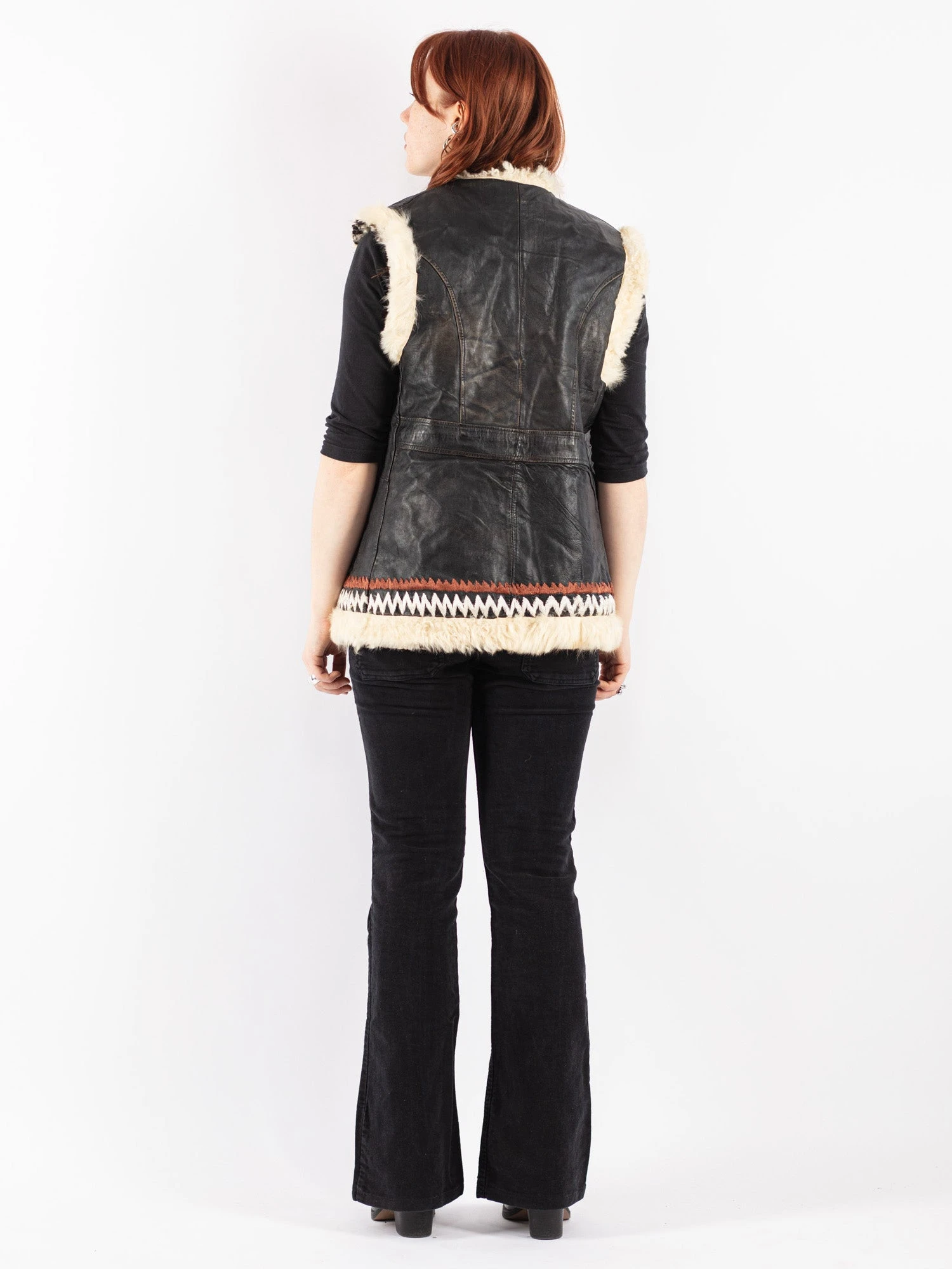 Black Vintage 60’s Women Sheepskin Vest in Black With Free Delivery