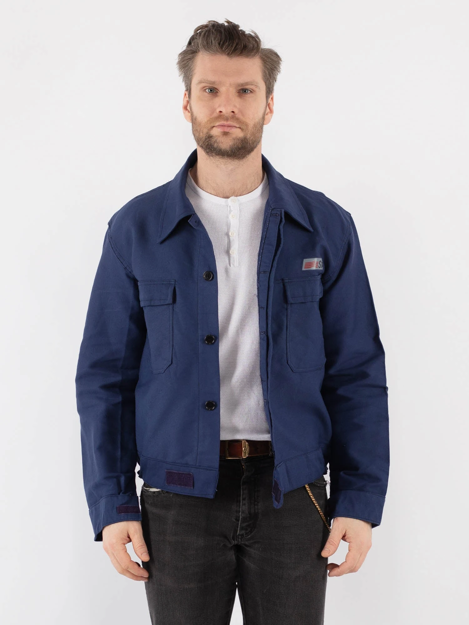 Blue Vintage 70’s Men Cropped Italian Work Jacket in Blue With Free Delivery