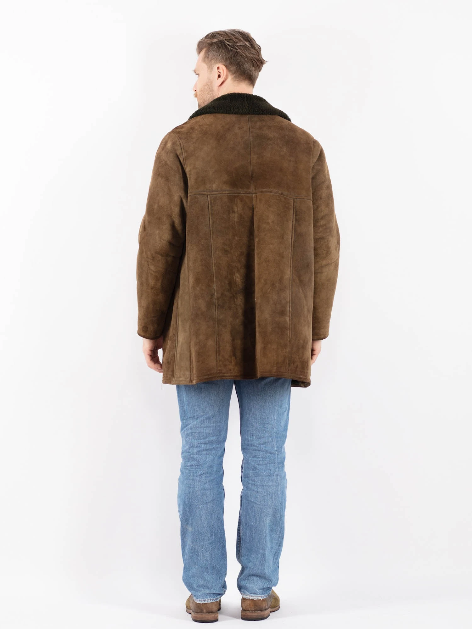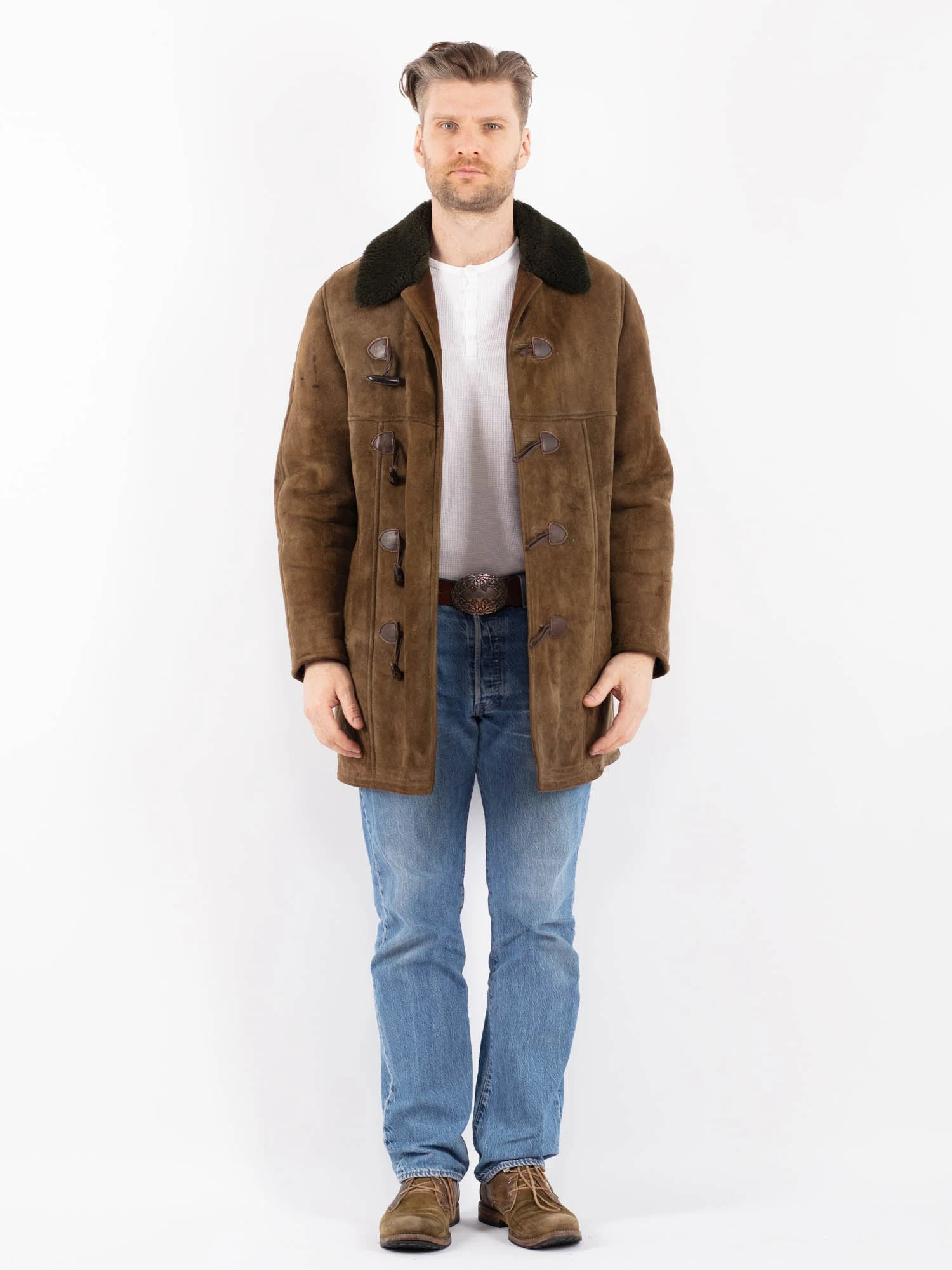 Green Vintage 70’s Men Sheepskin Coat in Green Sheepskin With Free Delivery