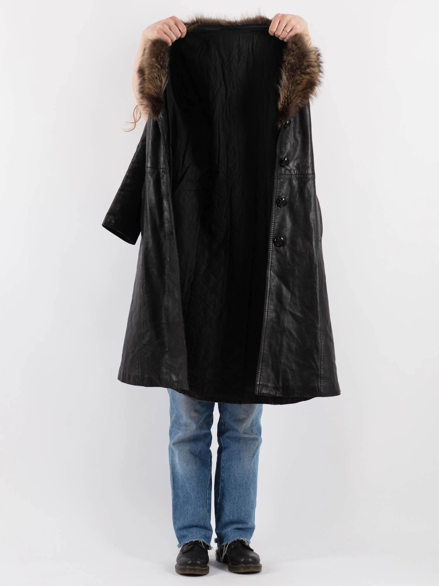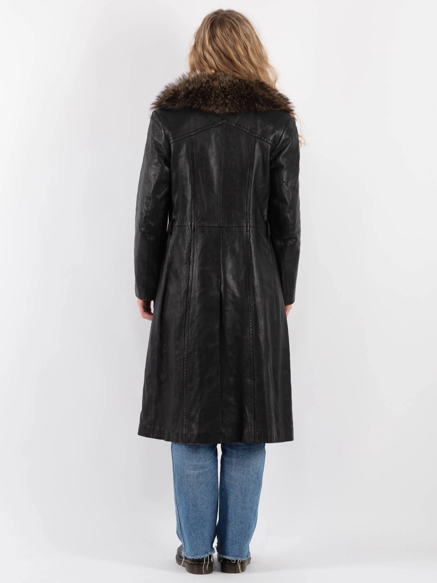 Black Vintage 70’s Penny Lane Leather Coat in Black With Free Delivery