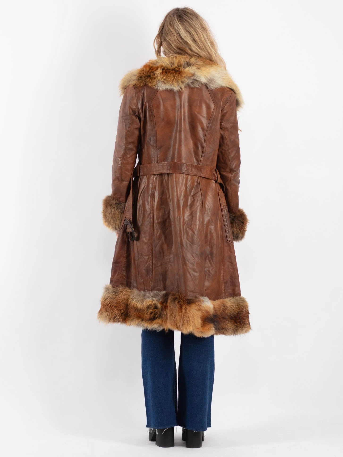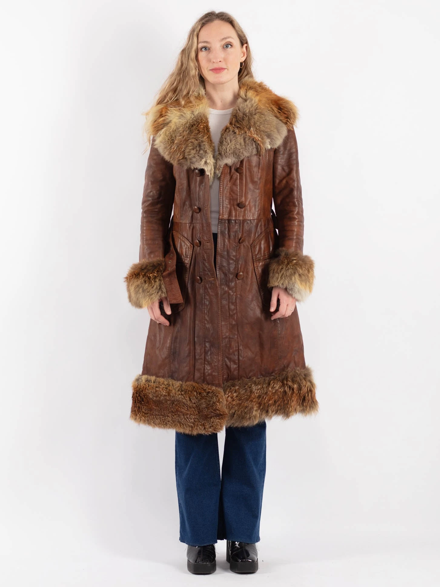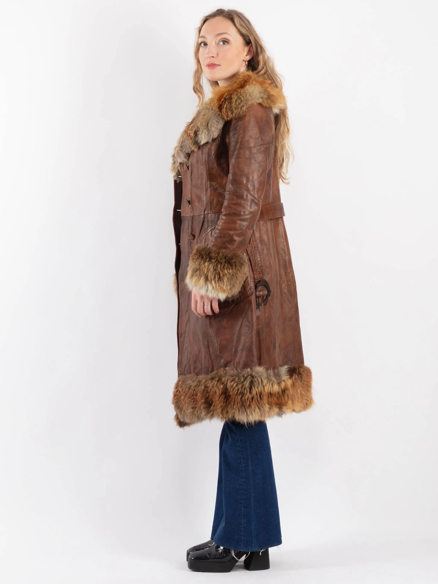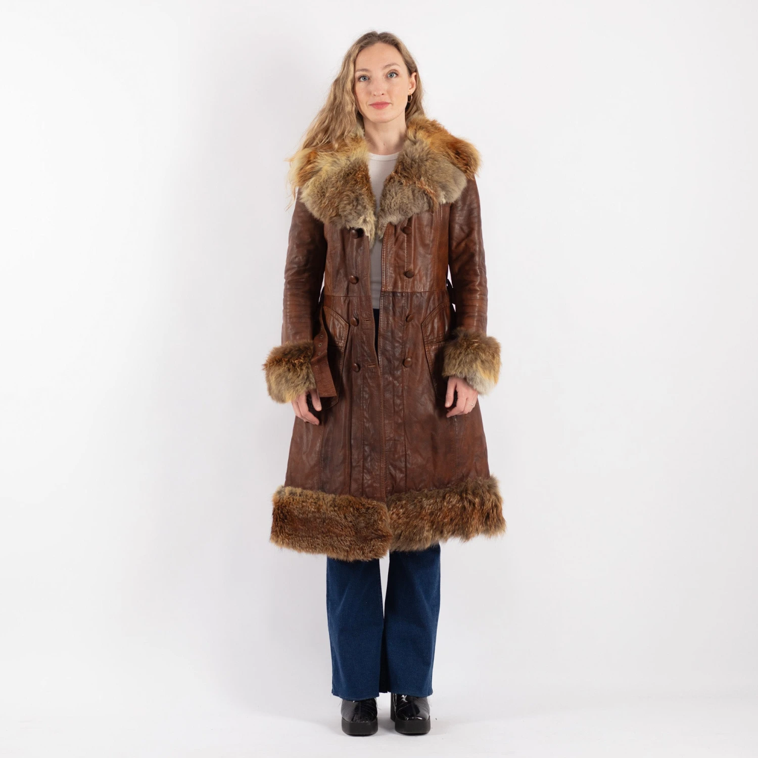 Brown Vintage 70’s Penny Lane Leather Fur Coat in Brown With Free Delivery