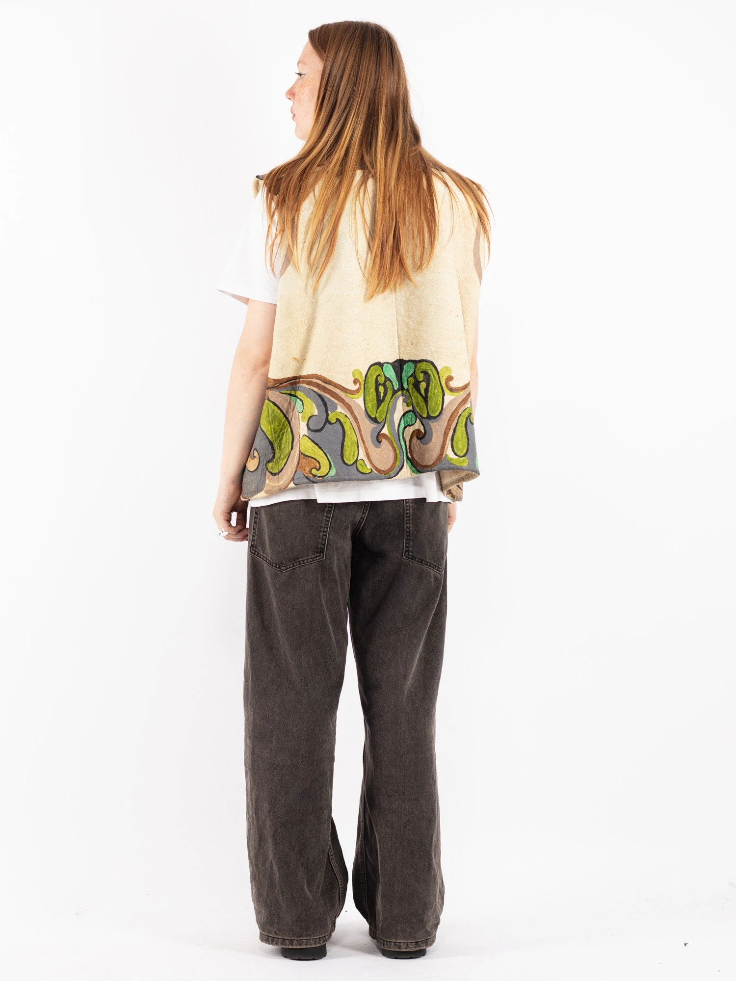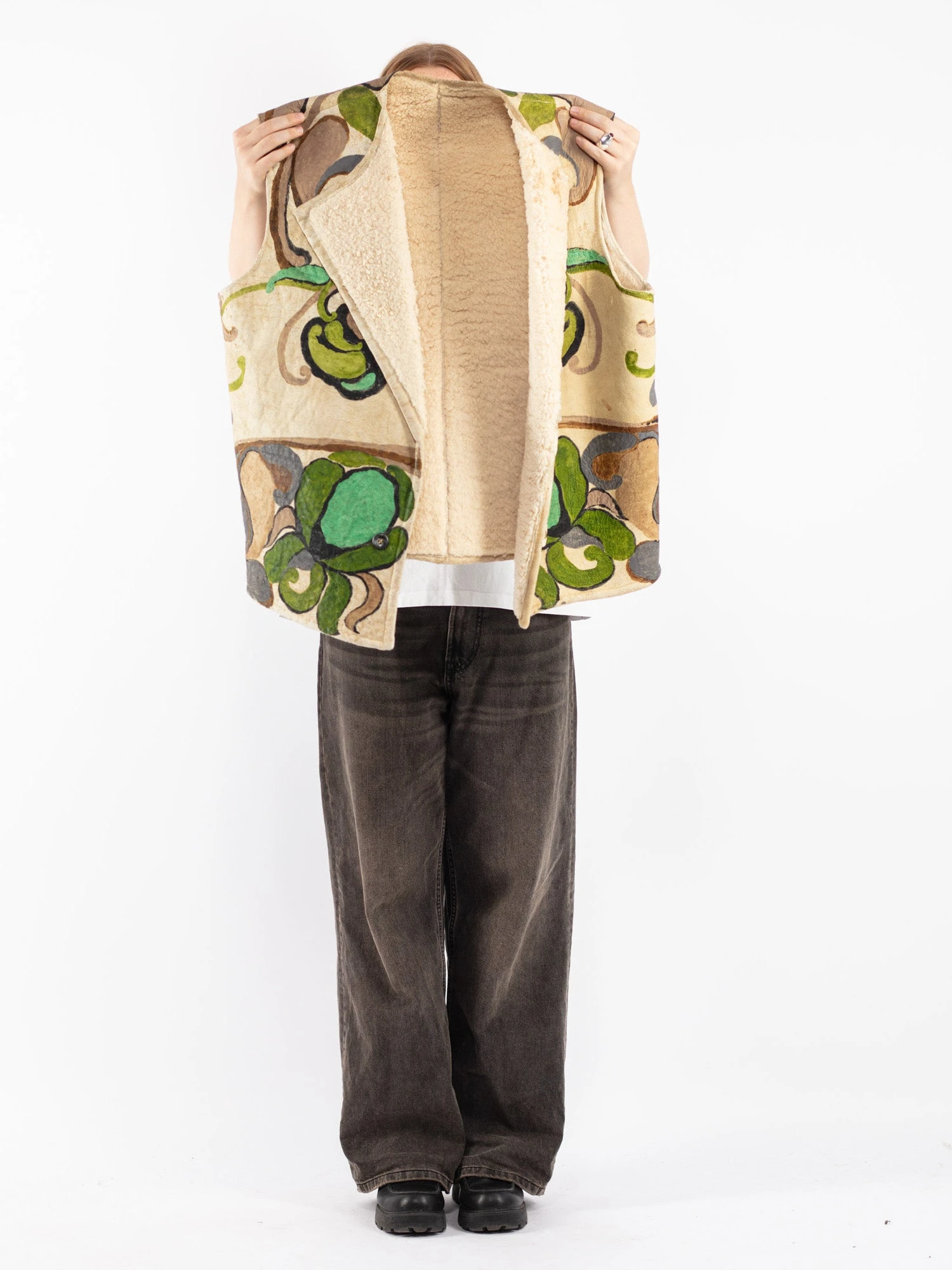 Multi Vintage 70’s Women Sheepskin Vest in Multi With Free Delivery