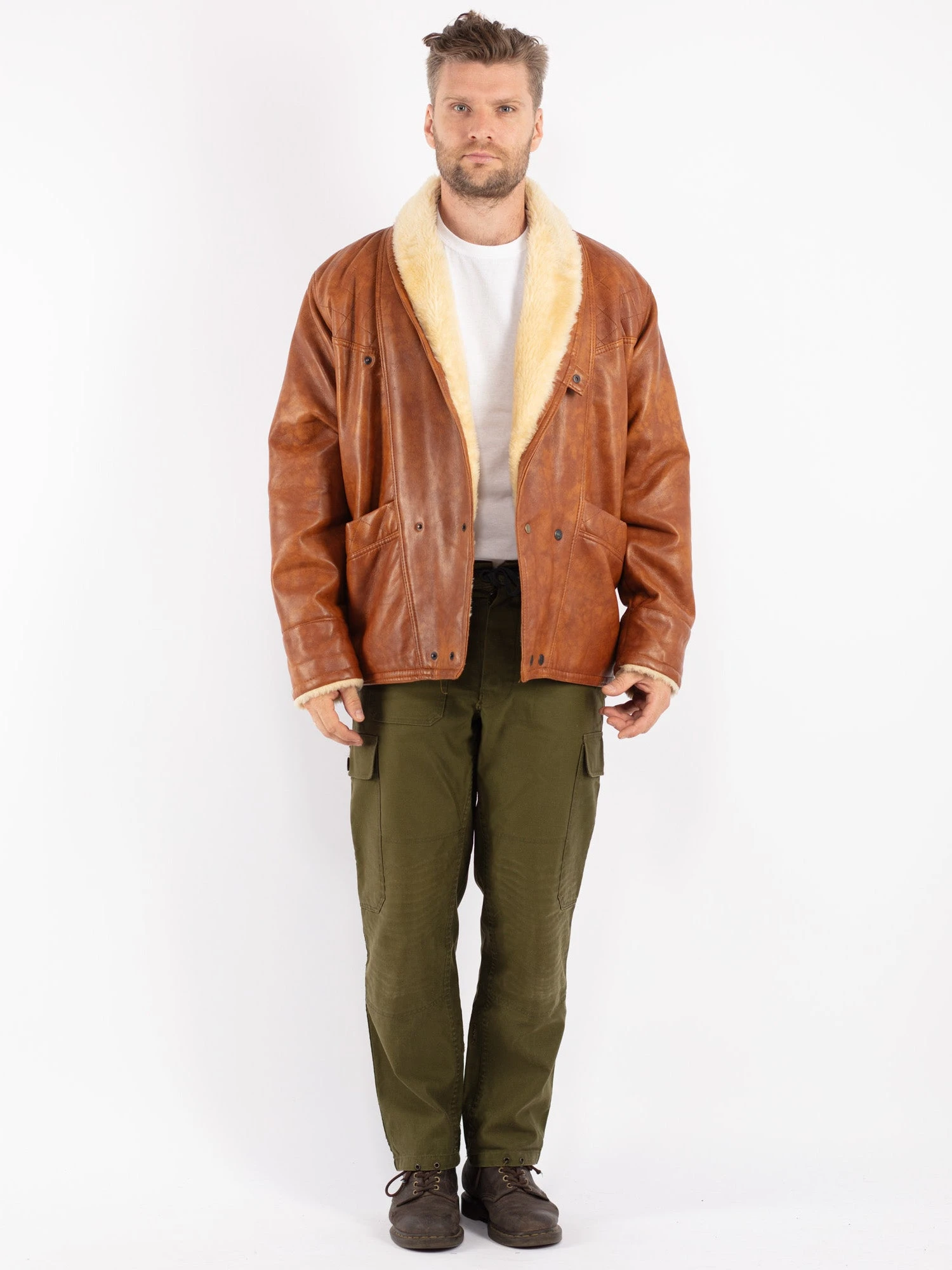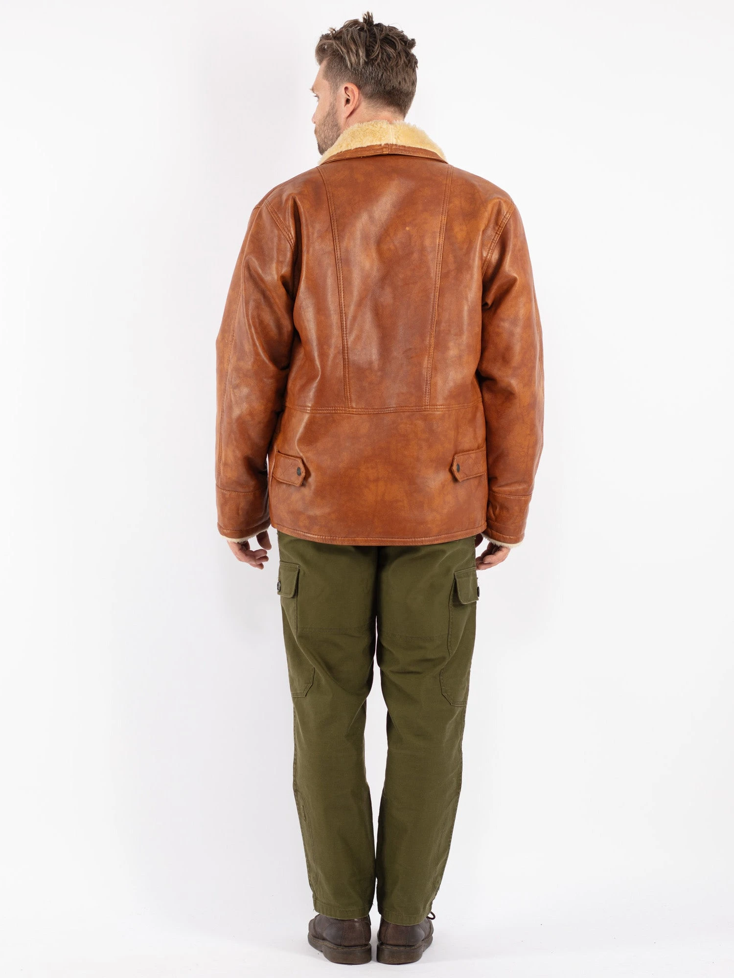 Brown Vintage 80’s Men Faux Sheepskin Coat in Brown Faux Sheepskin With Free Delivery