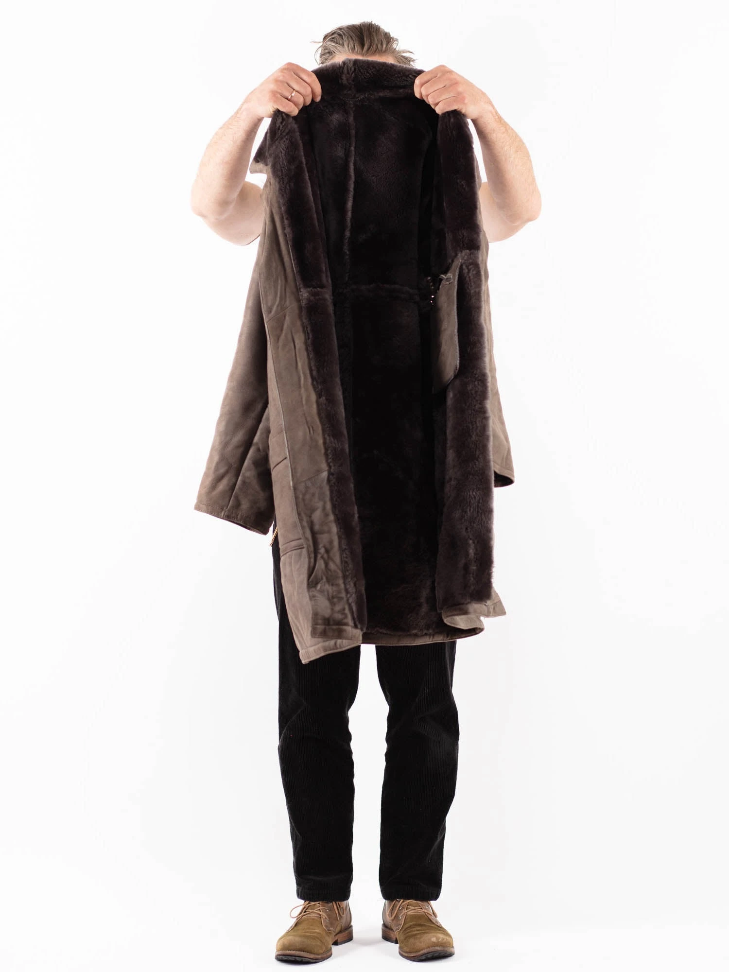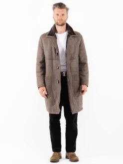 Gray Vintage 80’s Men Sheepskin Coat in Gray Sheepskin With Free Delivery