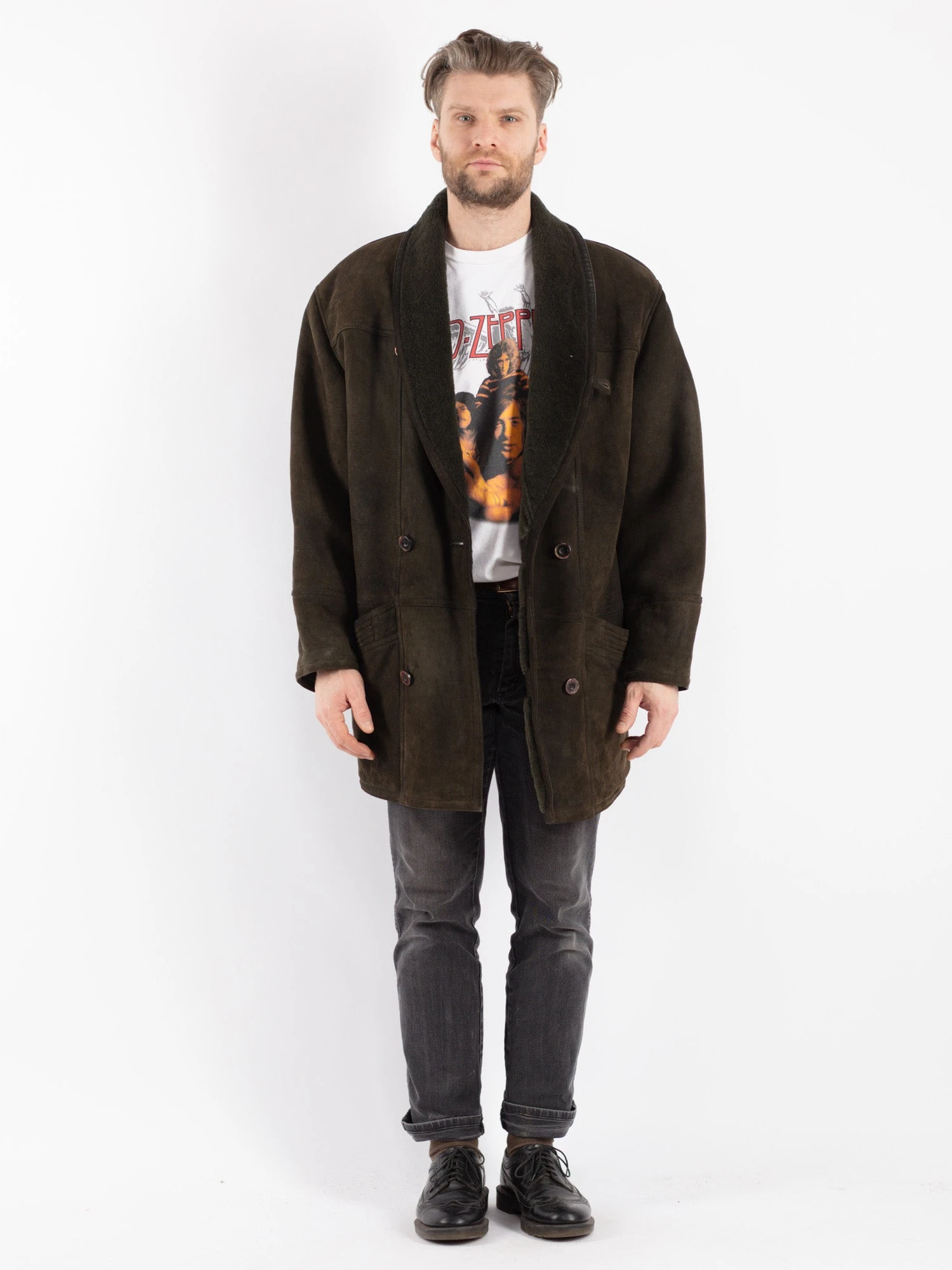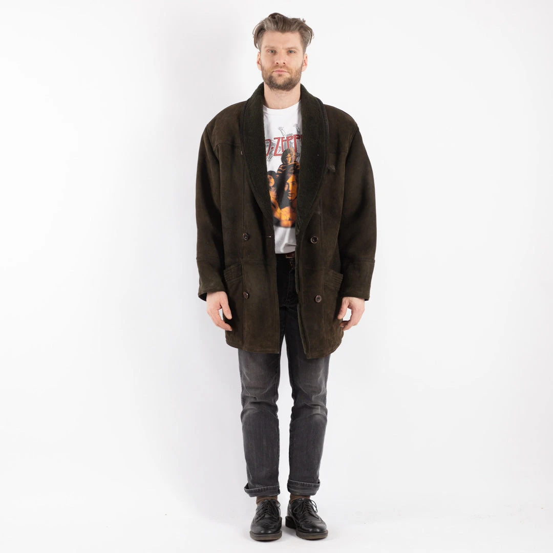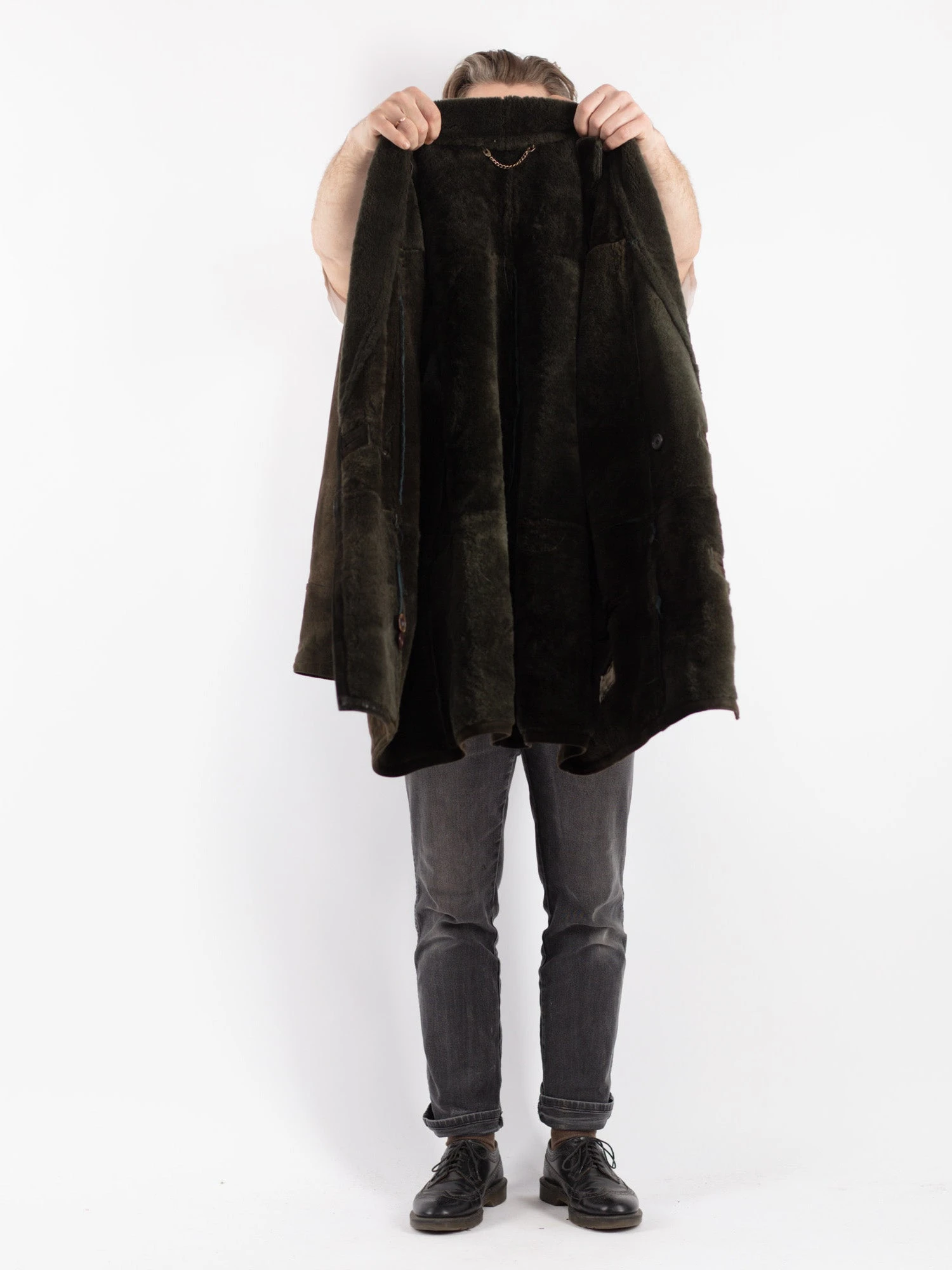 Green Vintage 80’s Men Sheepskin Shearling Coat in Green Sheepskin Shearling With Free Delivery