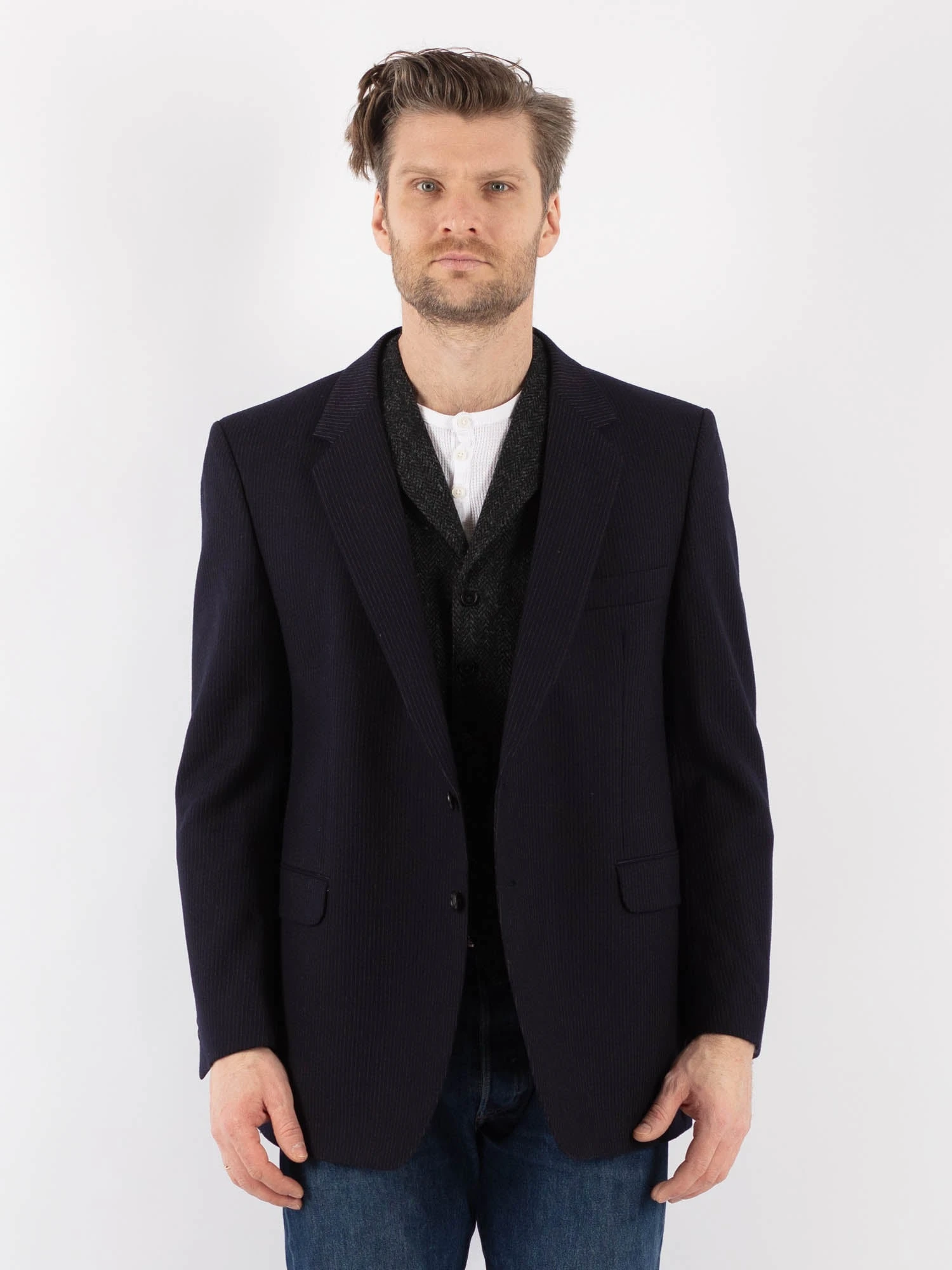 Blue Vintage 80’s Men Wool Blazer Jacket in Blue With Free Delivery