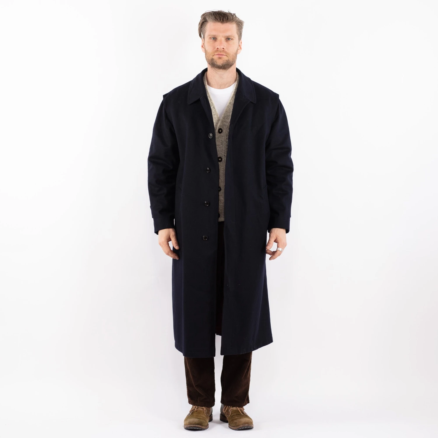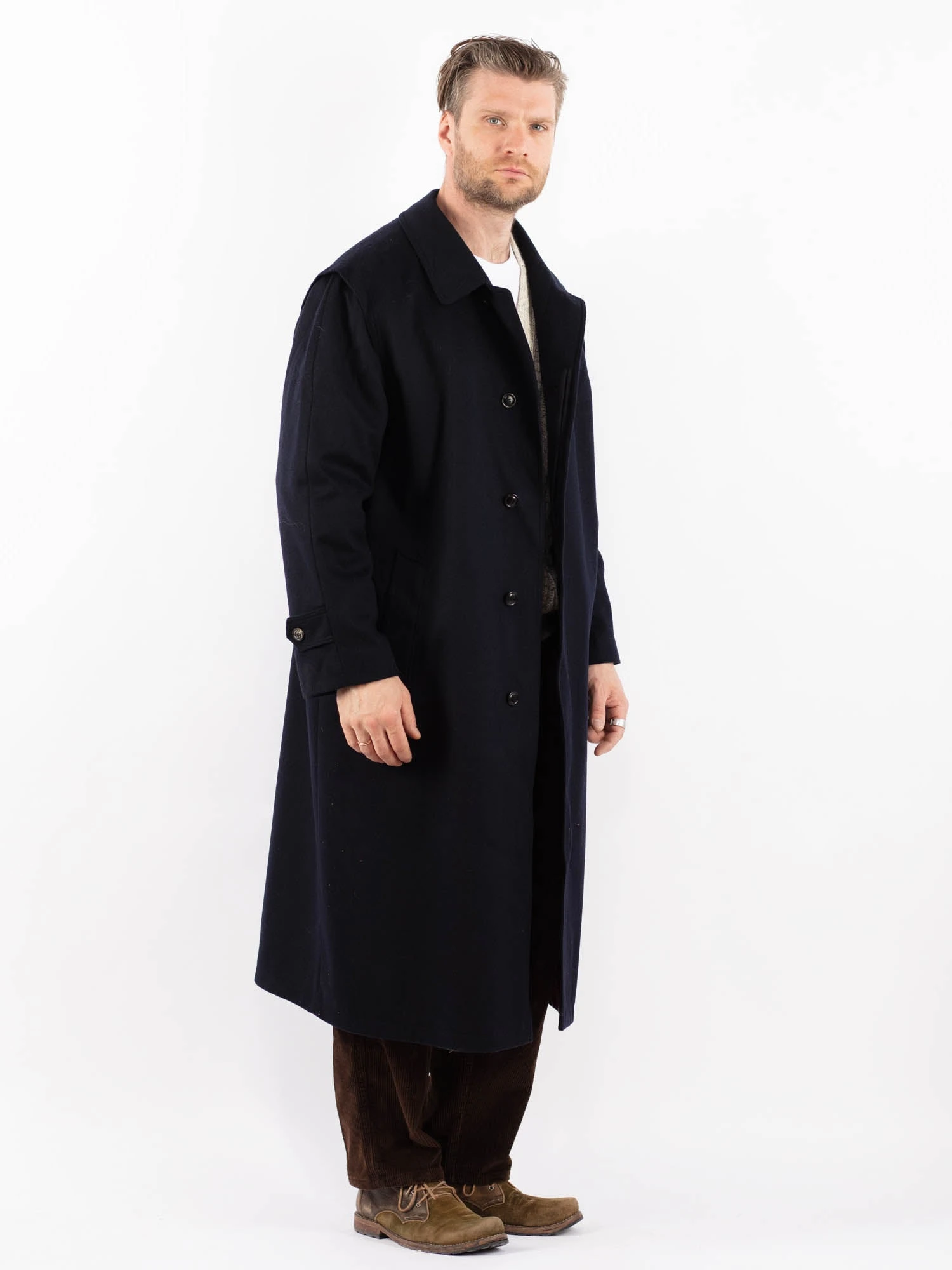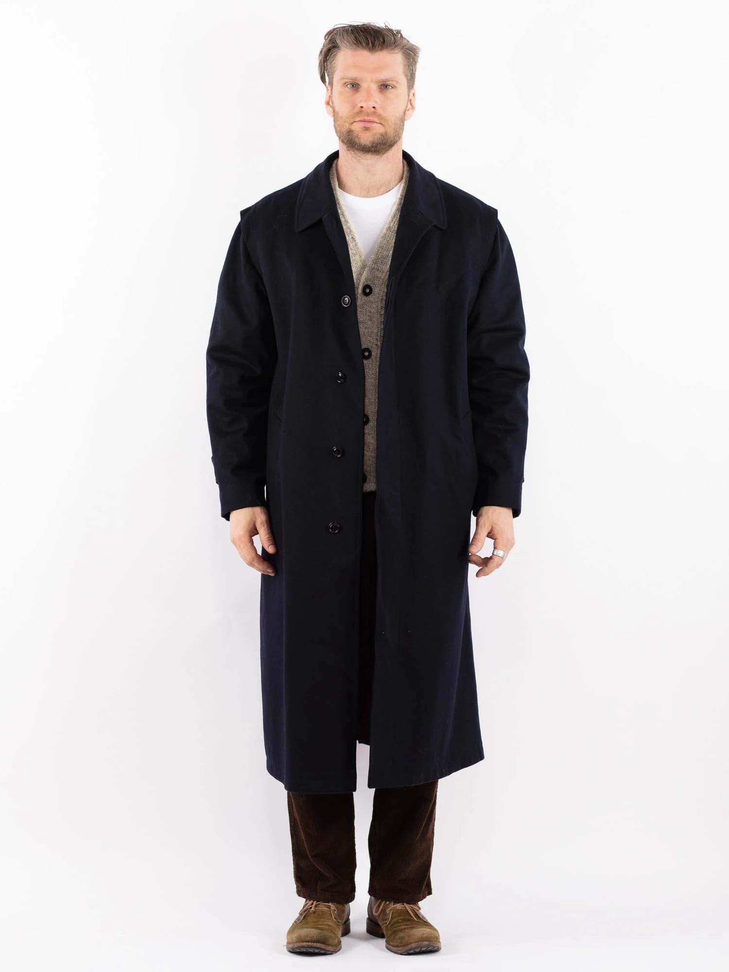 Blue Vintage 80’s Men Wool Blend Coat in Blue With Free Delivery