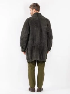 This is a vintage 80’s suede sherpa coat in sunny brown. The coat has a summary closure, a shawl collar, padded shoulders, and two pockets. It is made of suede leather, partly lined with acrylic sherpa, and the sleeves are lined with polyester. Warm enough to wait for the winter.