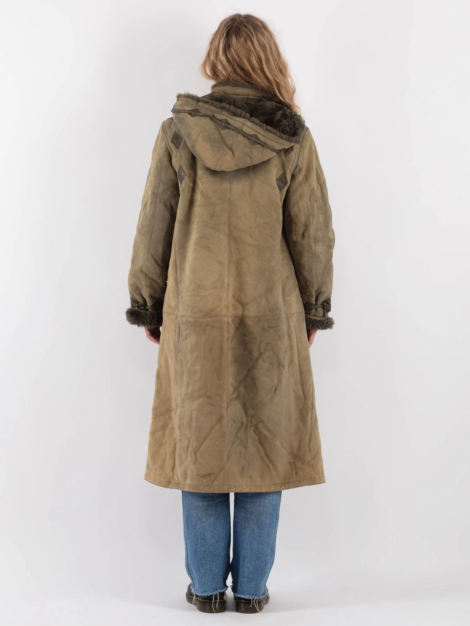 Green Vintage 80’s Women Sheepskin Coat in Green With Free Delivery