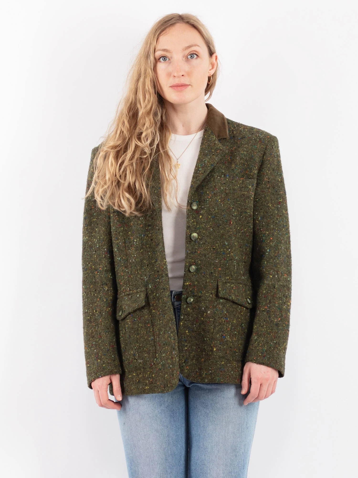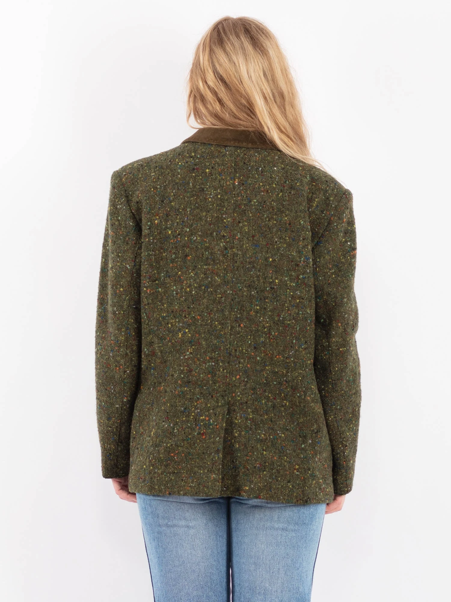 Green Vintage 80’s Women Wool Blazer Jacket in Green With Free Delivery