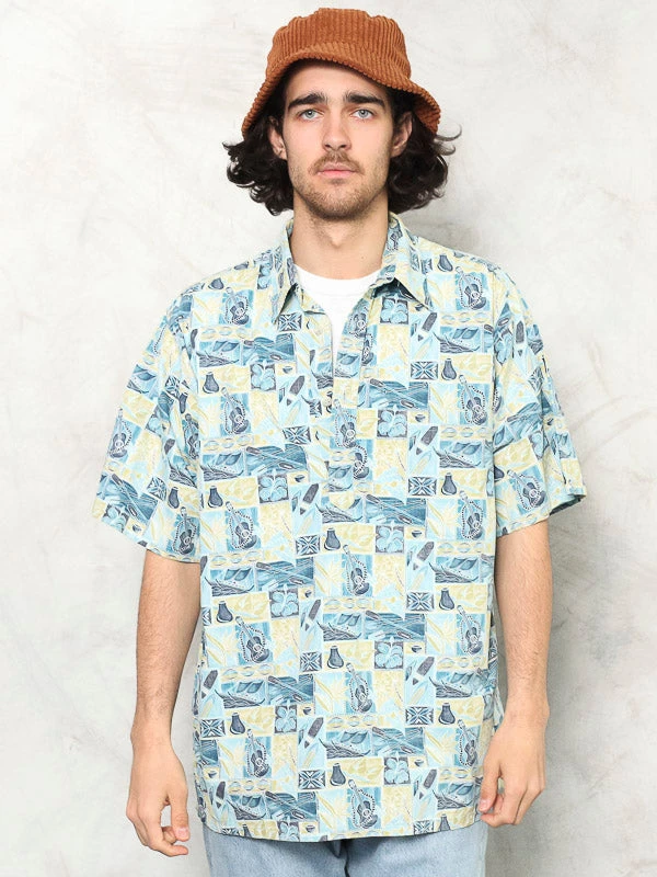 Amazing vintage 90’s Hawaiian shirt. Features short sleeves and summary closure. Catchy and stunning. Perfect for lounging in those summer days.