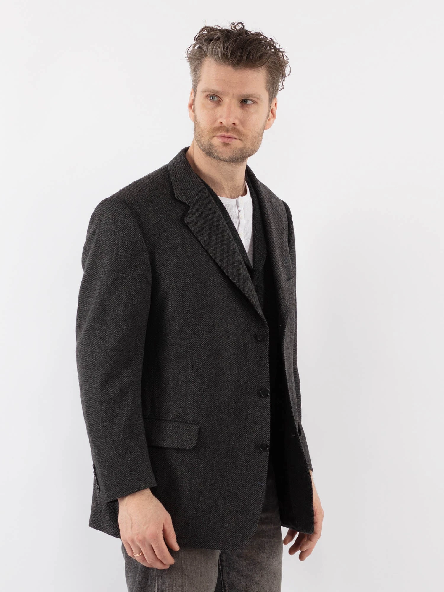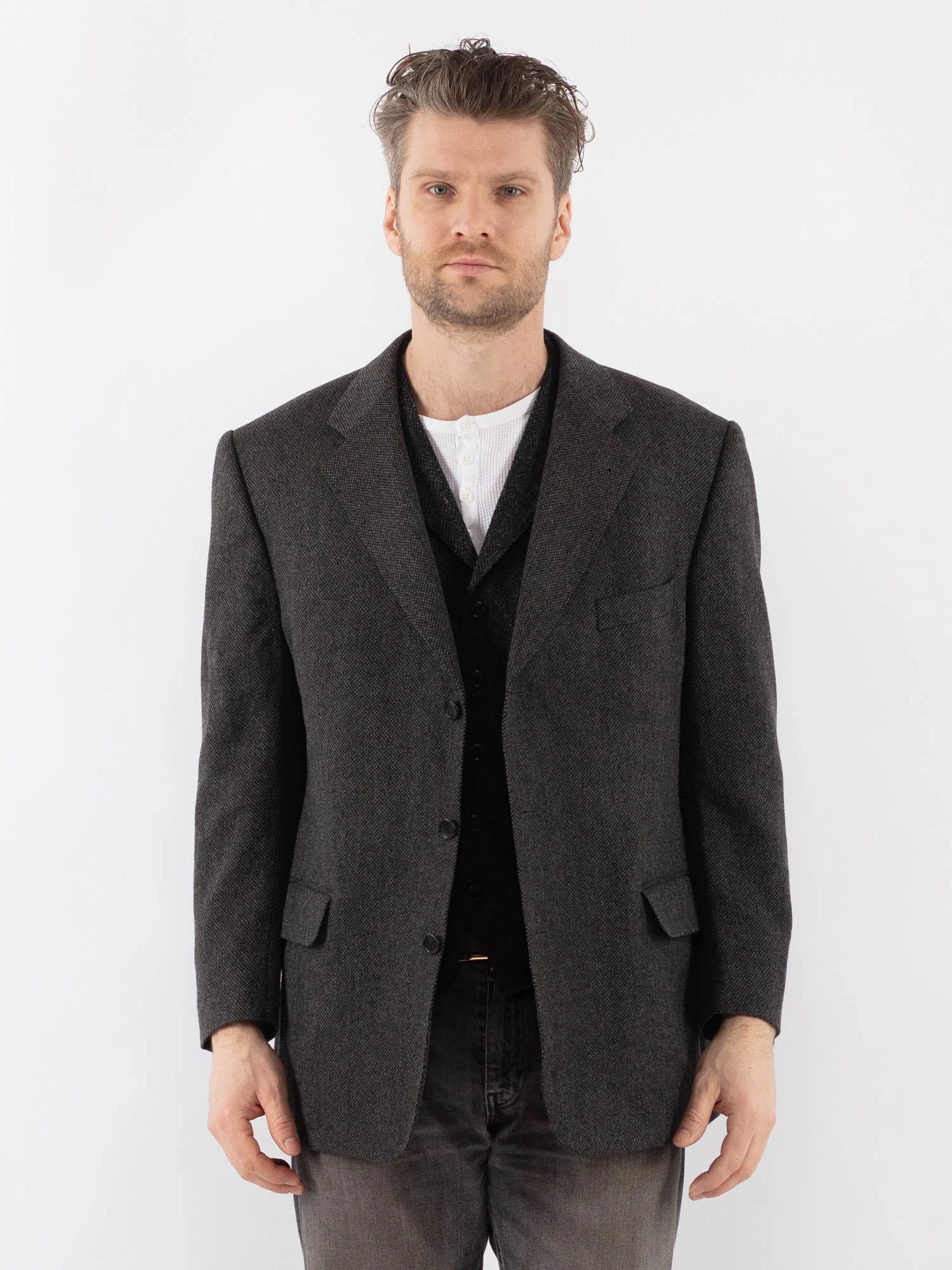 Gray Vintage 90’s Men Cashmere Wool Blend Blazer Jacket in Gray With Free Delivery