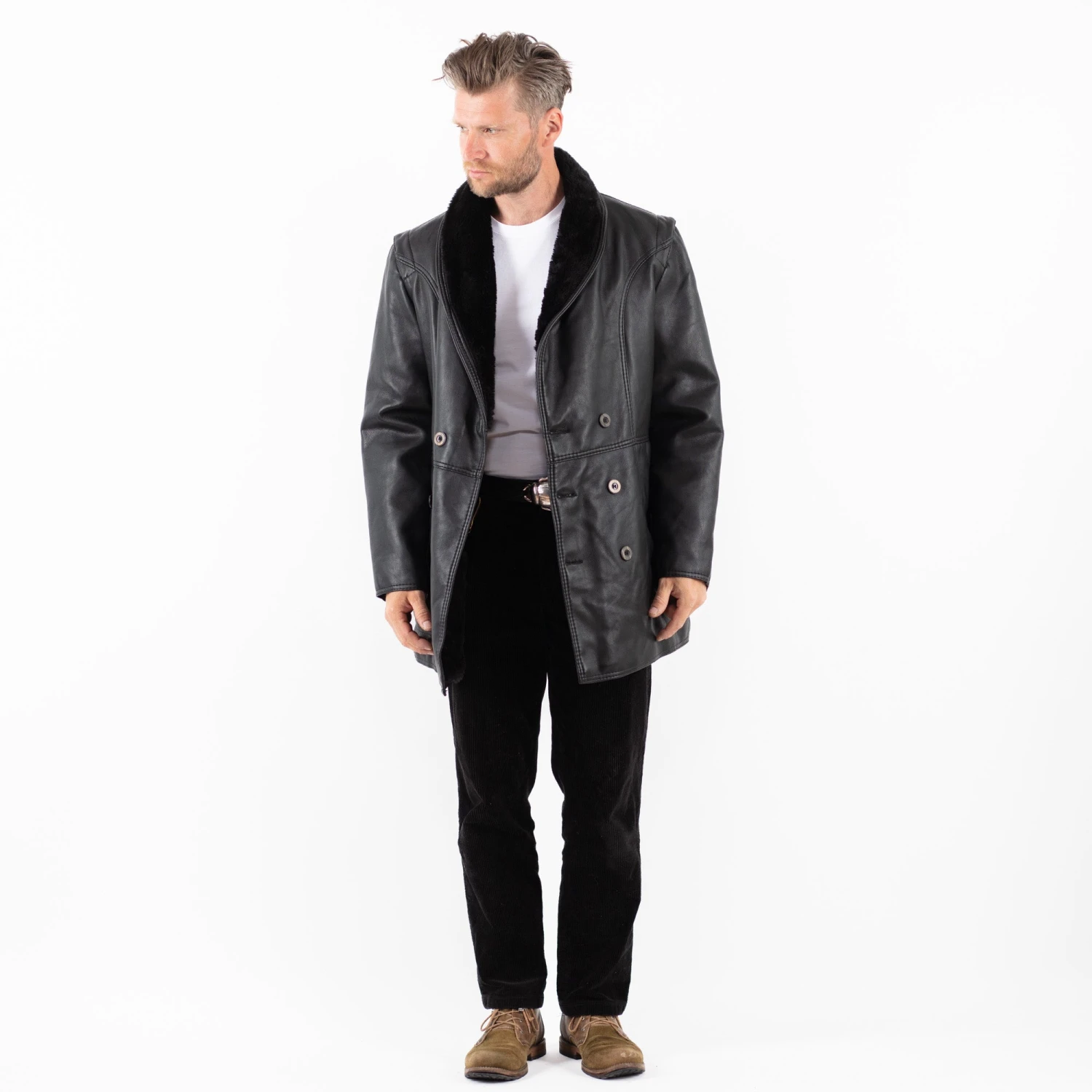 Black Vintage 90’s Men Faux Sheepskin Coat in Black Faux Sheepskin With Free Delivery