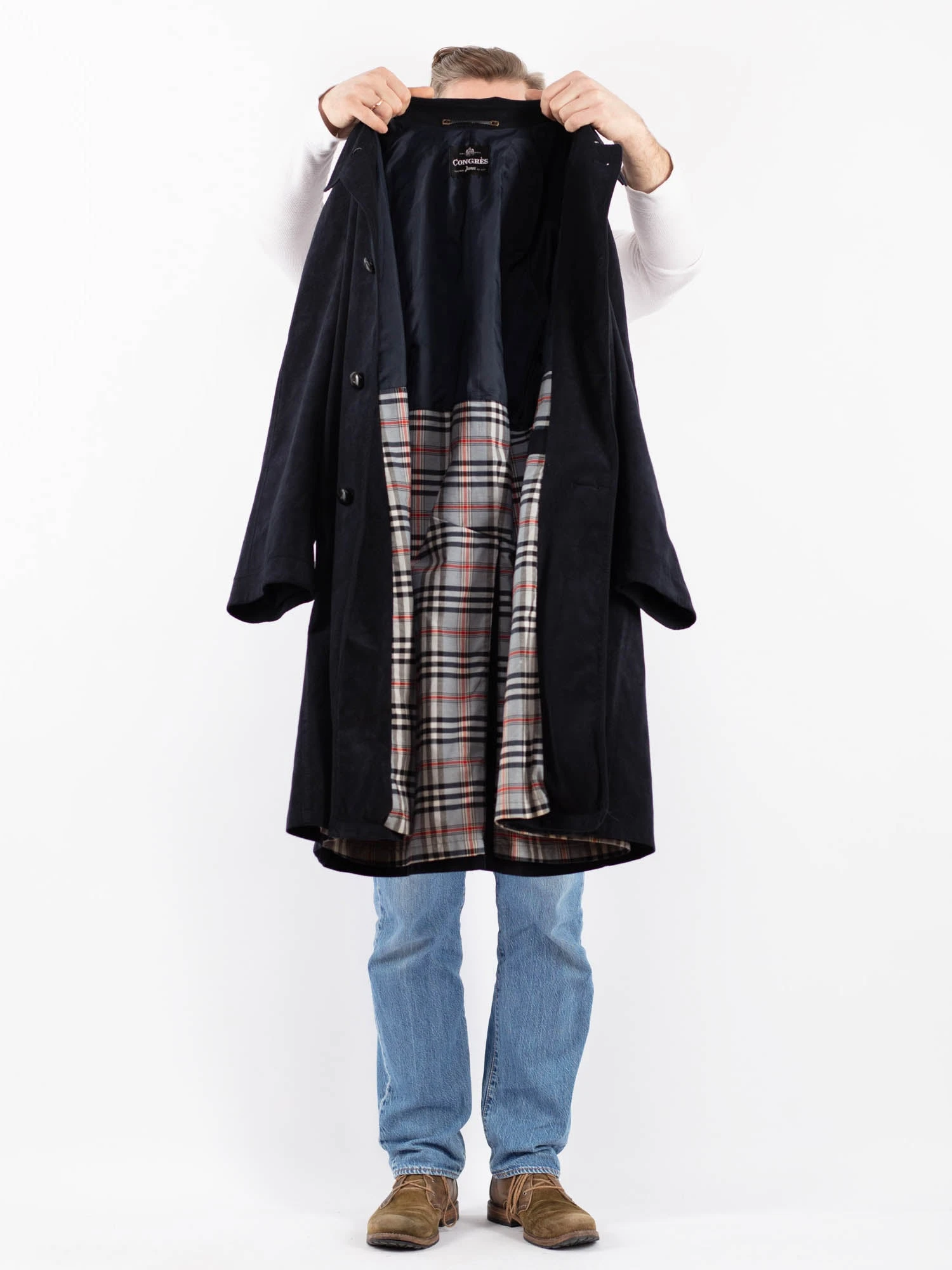 Blue Vintage 90’s Men Faux Suede Coat in Blue With Free Delivery