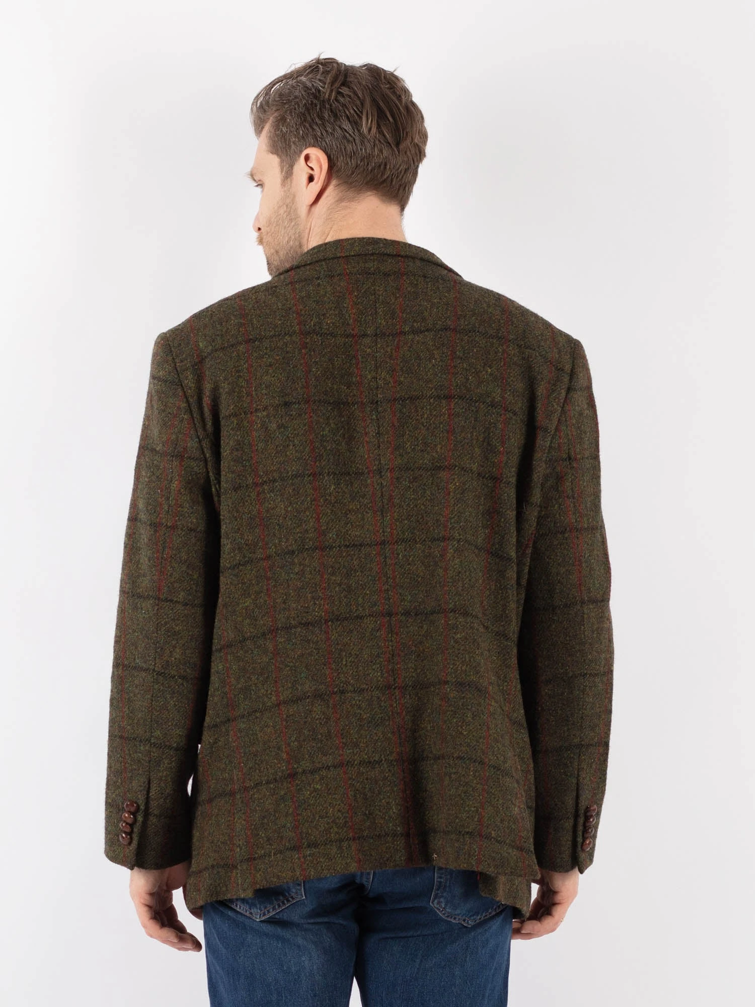 Green Vintage 90’s Men Harris Tweed Jacket in Green With Free Delivery