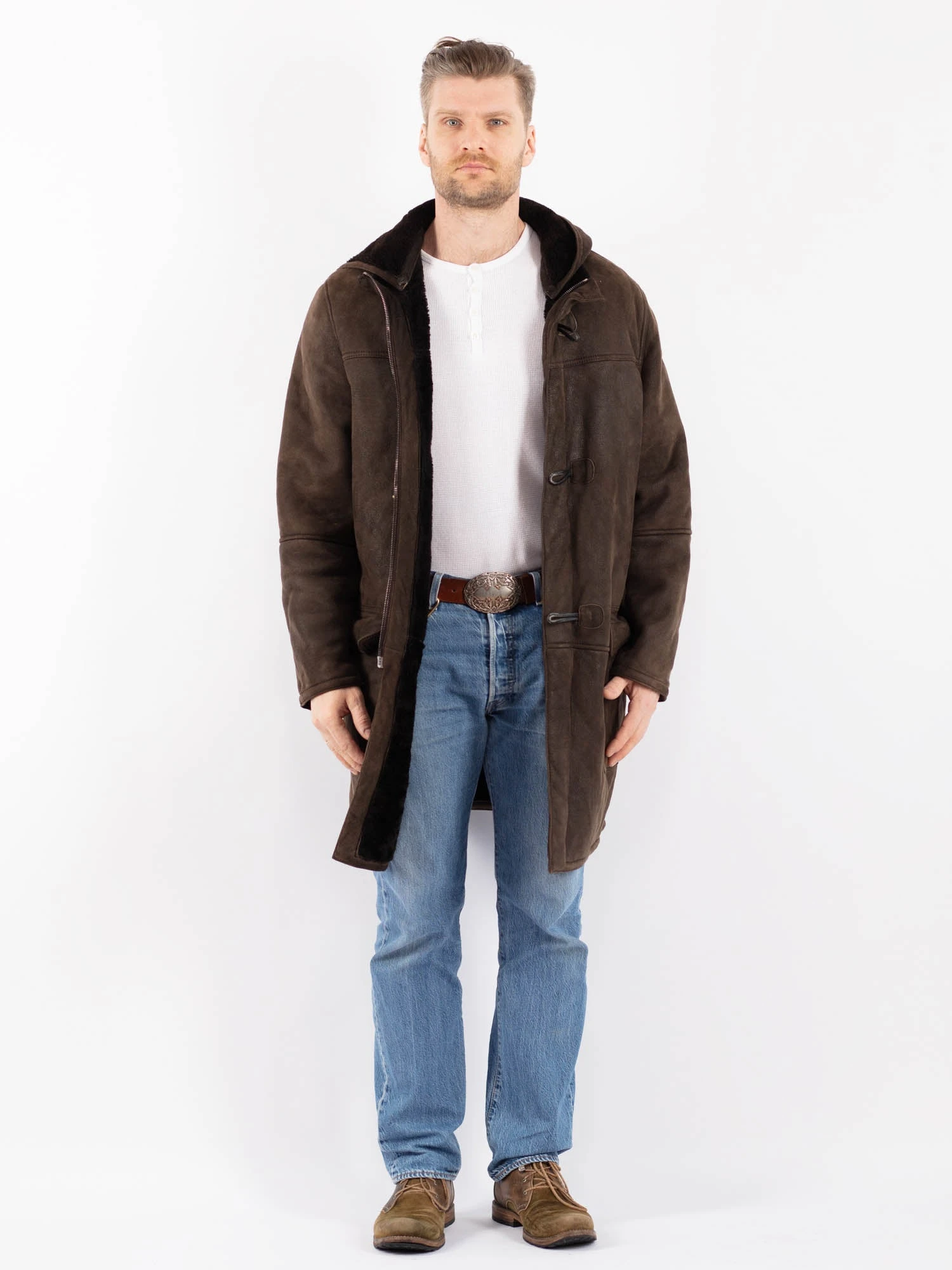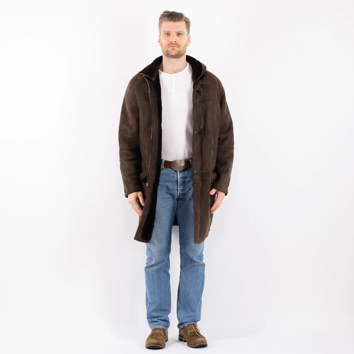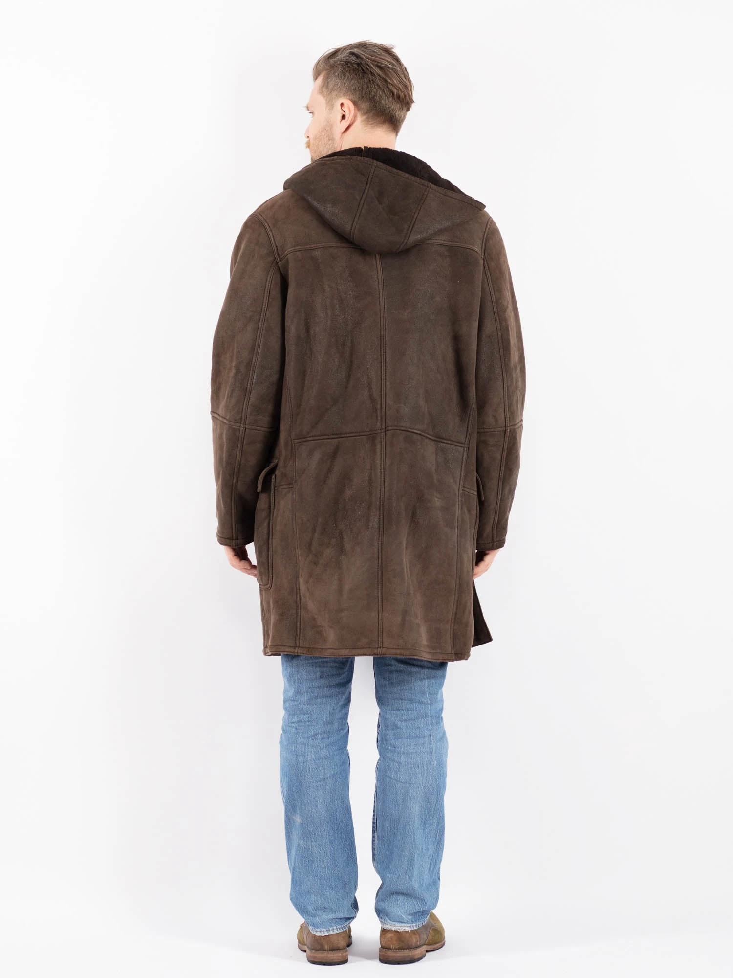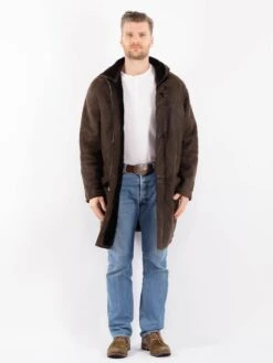 Brown Vintage 90’s Men Hooded Sheepskin Coat in Brown Sheepskin With Free Delivery