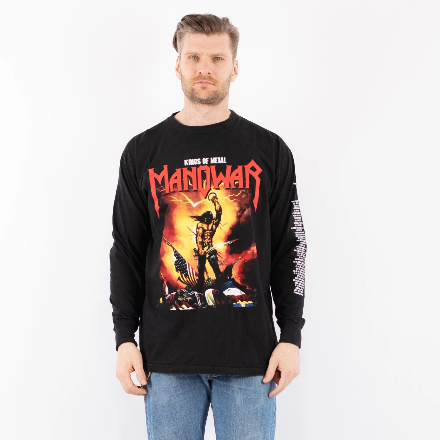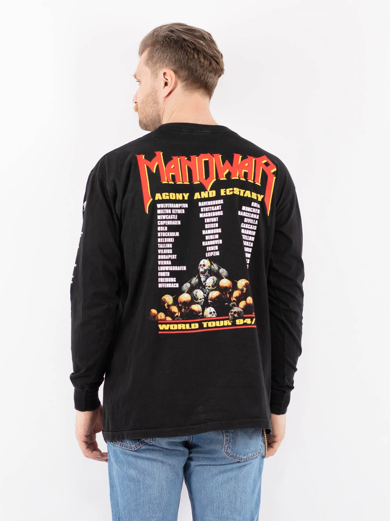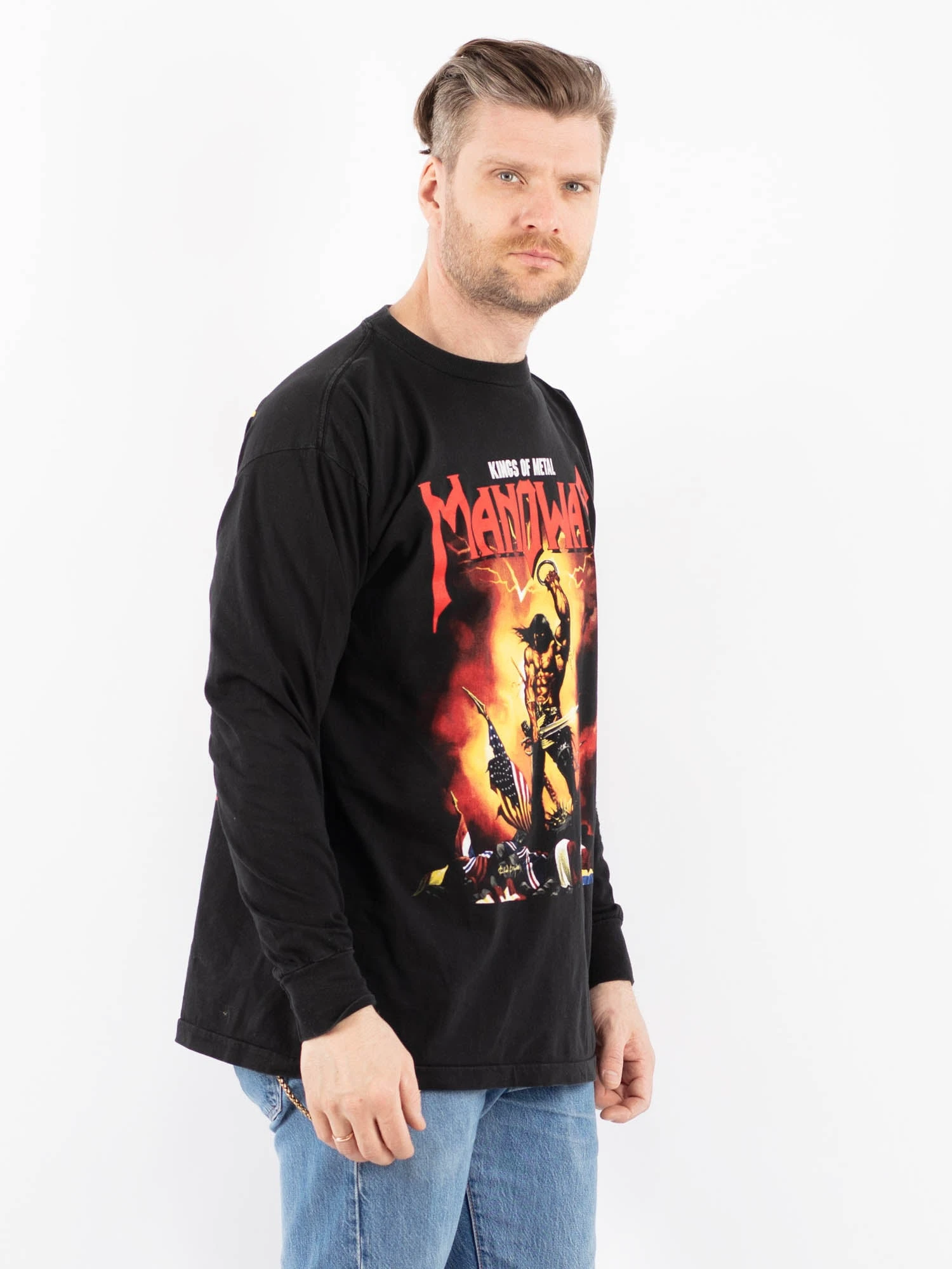 Black Vintage 90’s Men Manowar Print Long Sleeve Shirt in Black With Free Delivery