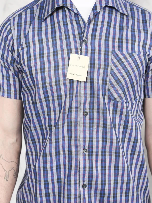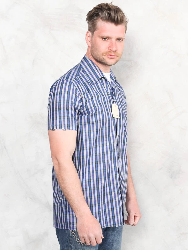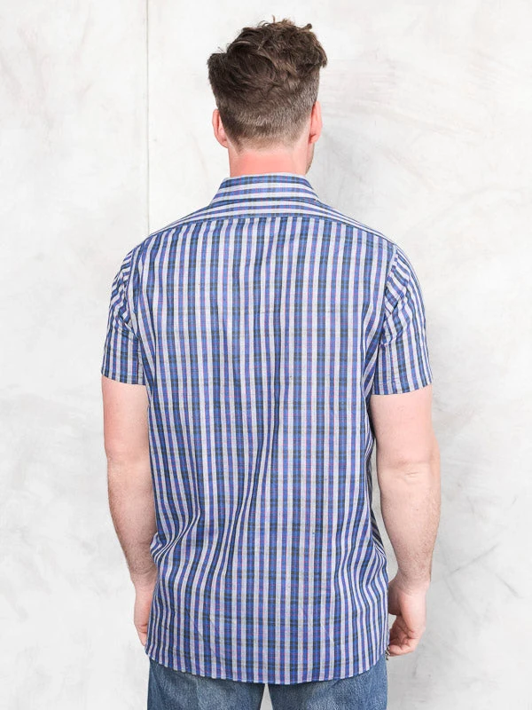 This is a simple and great vintage 90’s men’s shirt in blue with plaid pattern. Made of cotton.