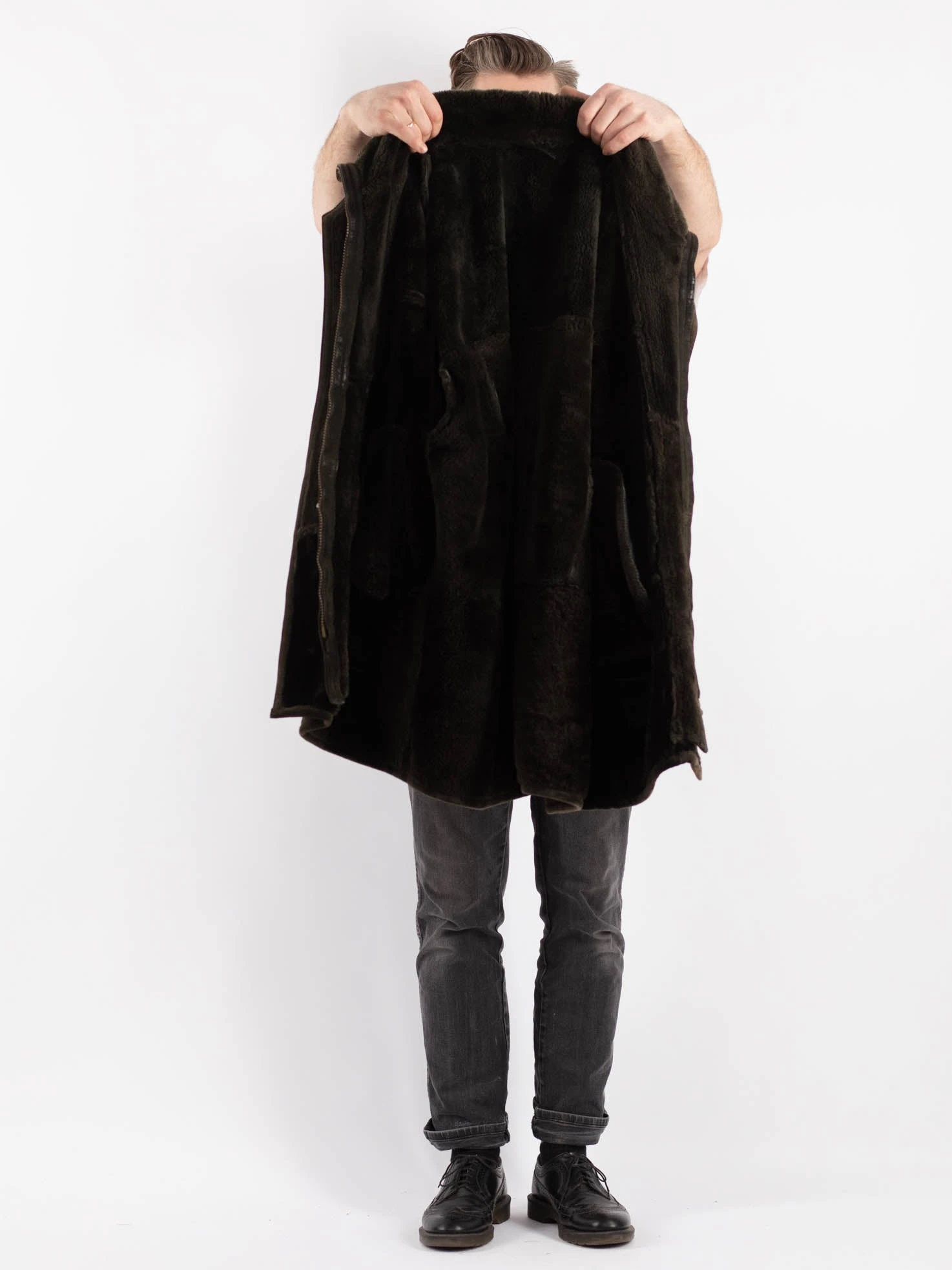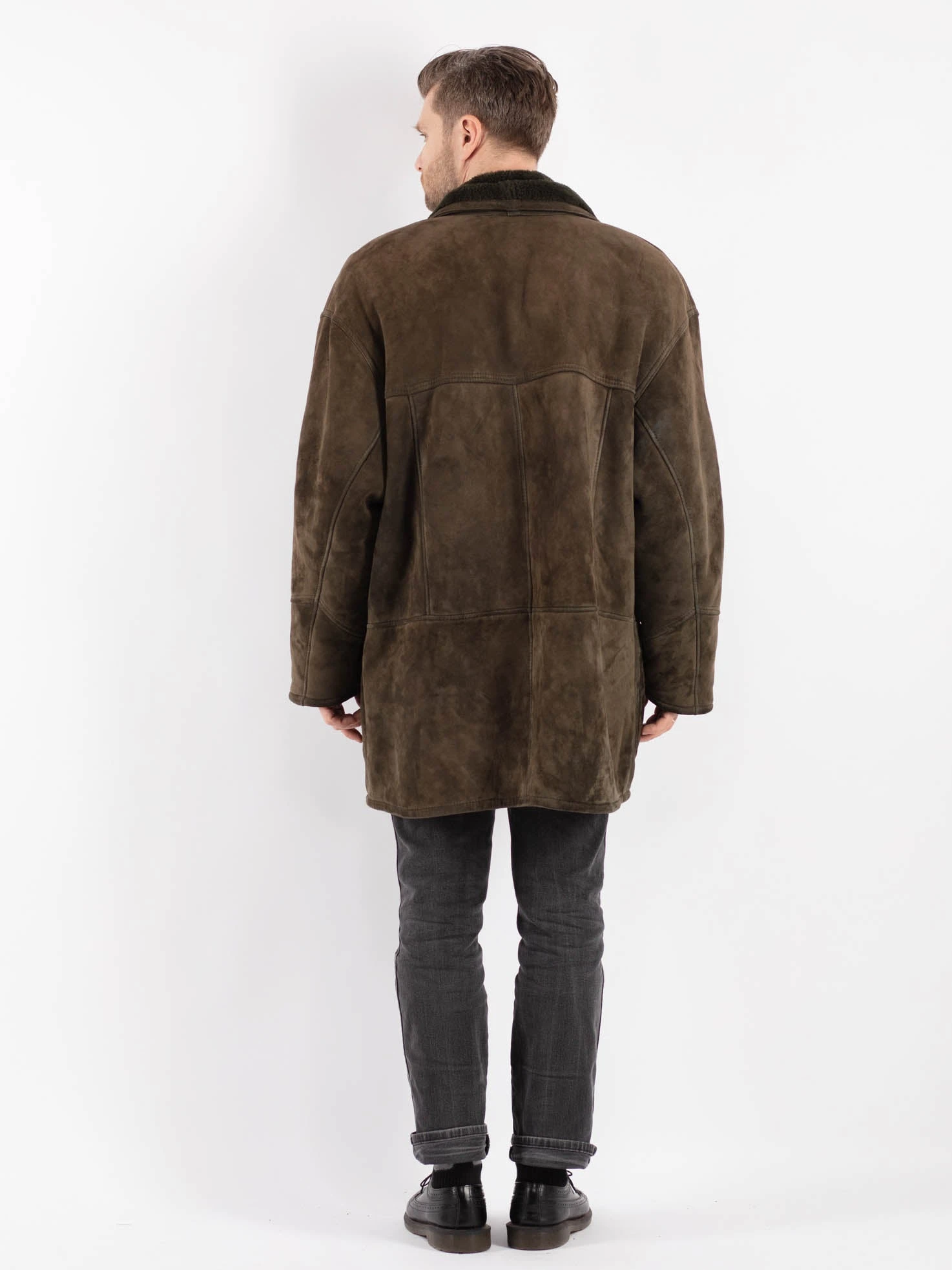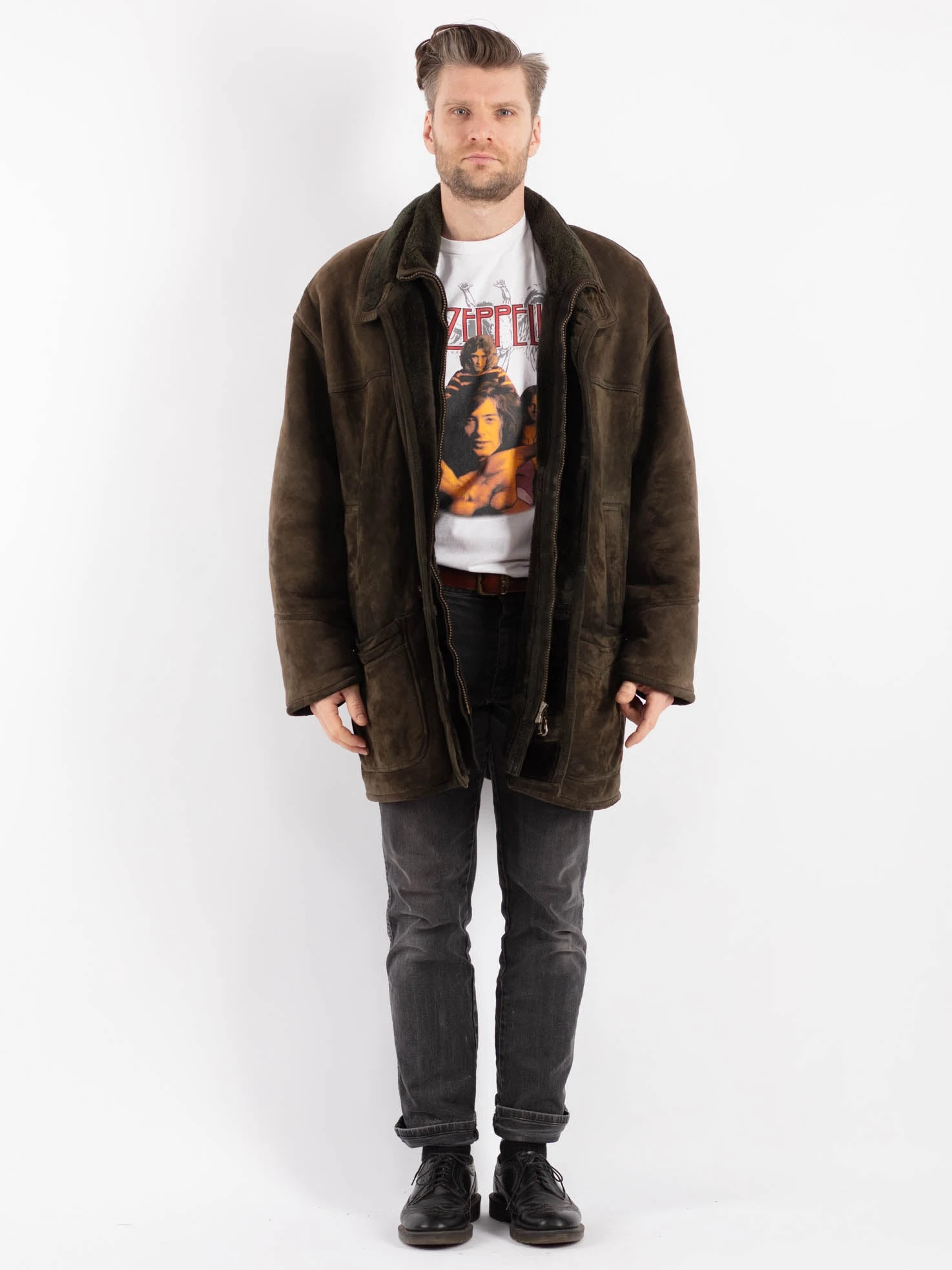 Green Vintage 90’s Men Sheepskin Coat in Green Sheepskin With Free Delivery