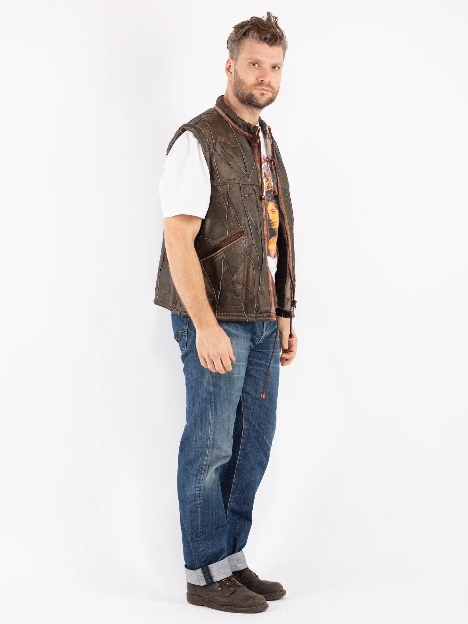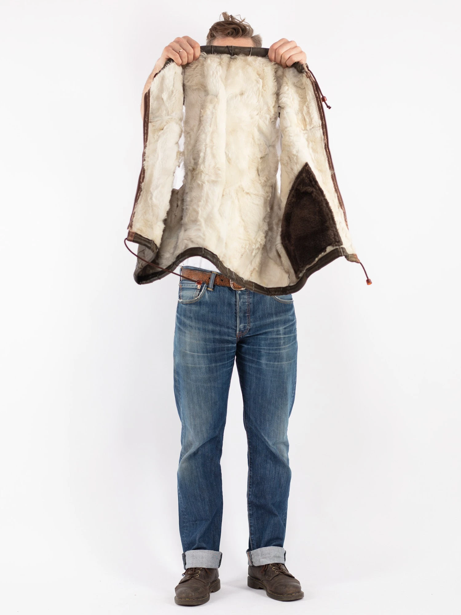 Brown Vintage 90’s Men Sheepskin Shearling Vest in Brown With Free Delivery