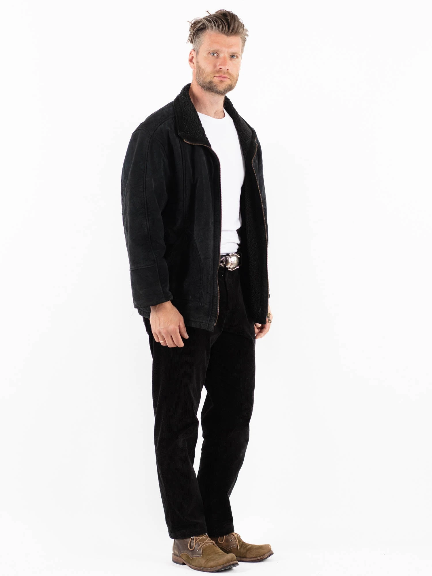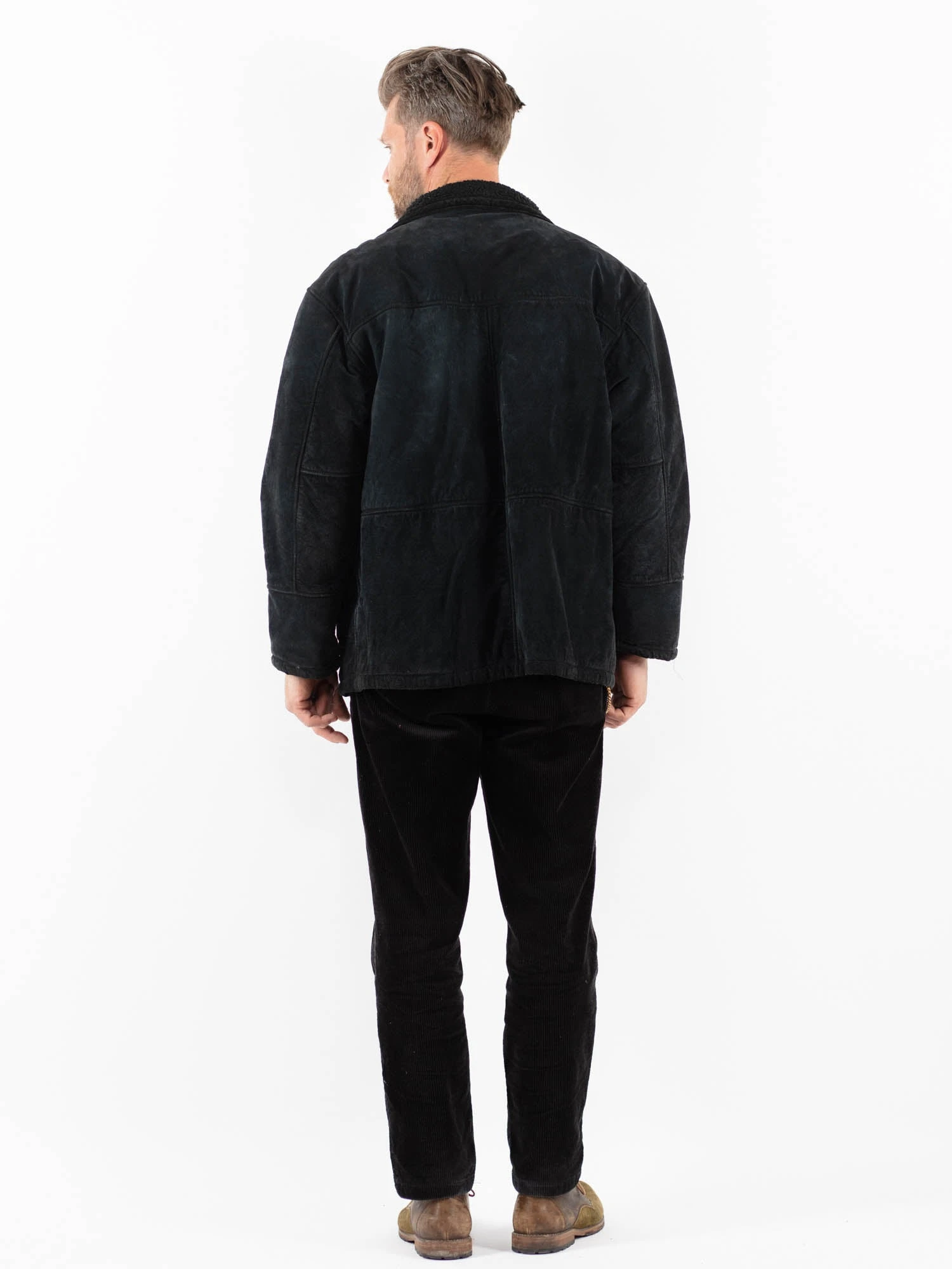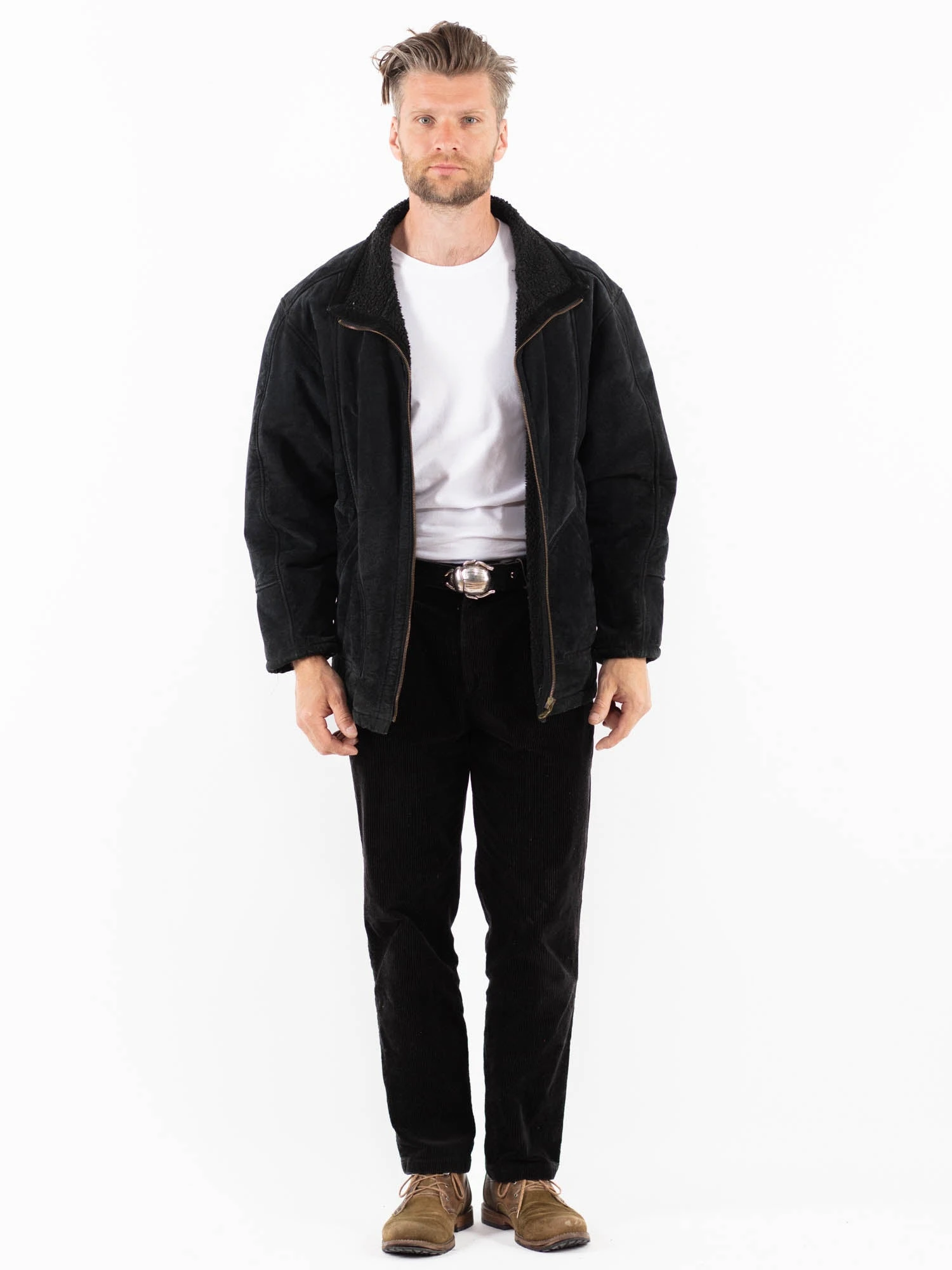 Black Vintage 90’s Men Suede Sherpa Jacket in Black Suede Sherpa With Free Delivery