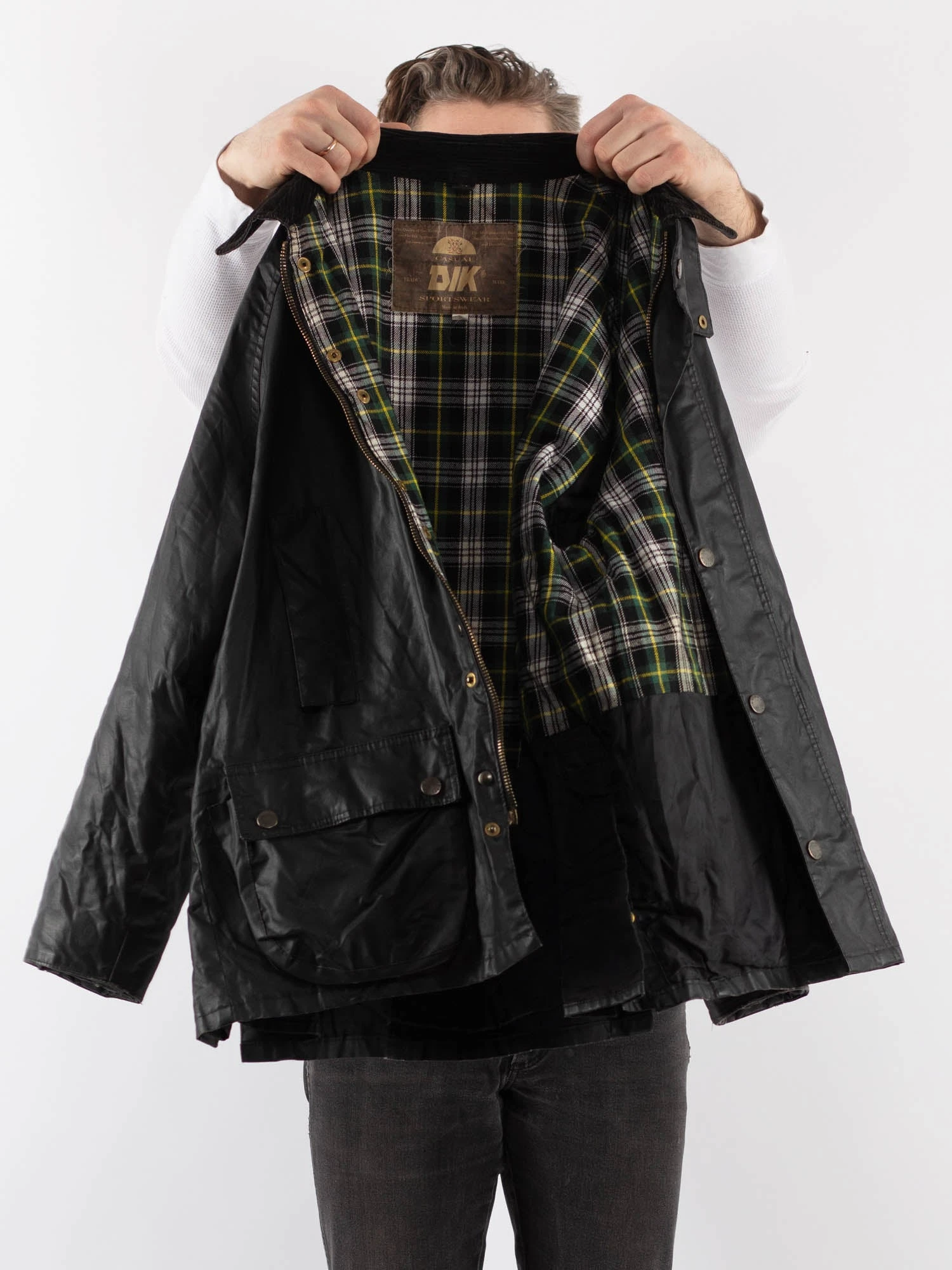 Black Vintage 90’s Men Waxed Canvas Style Jacket in Black With Free Delivery