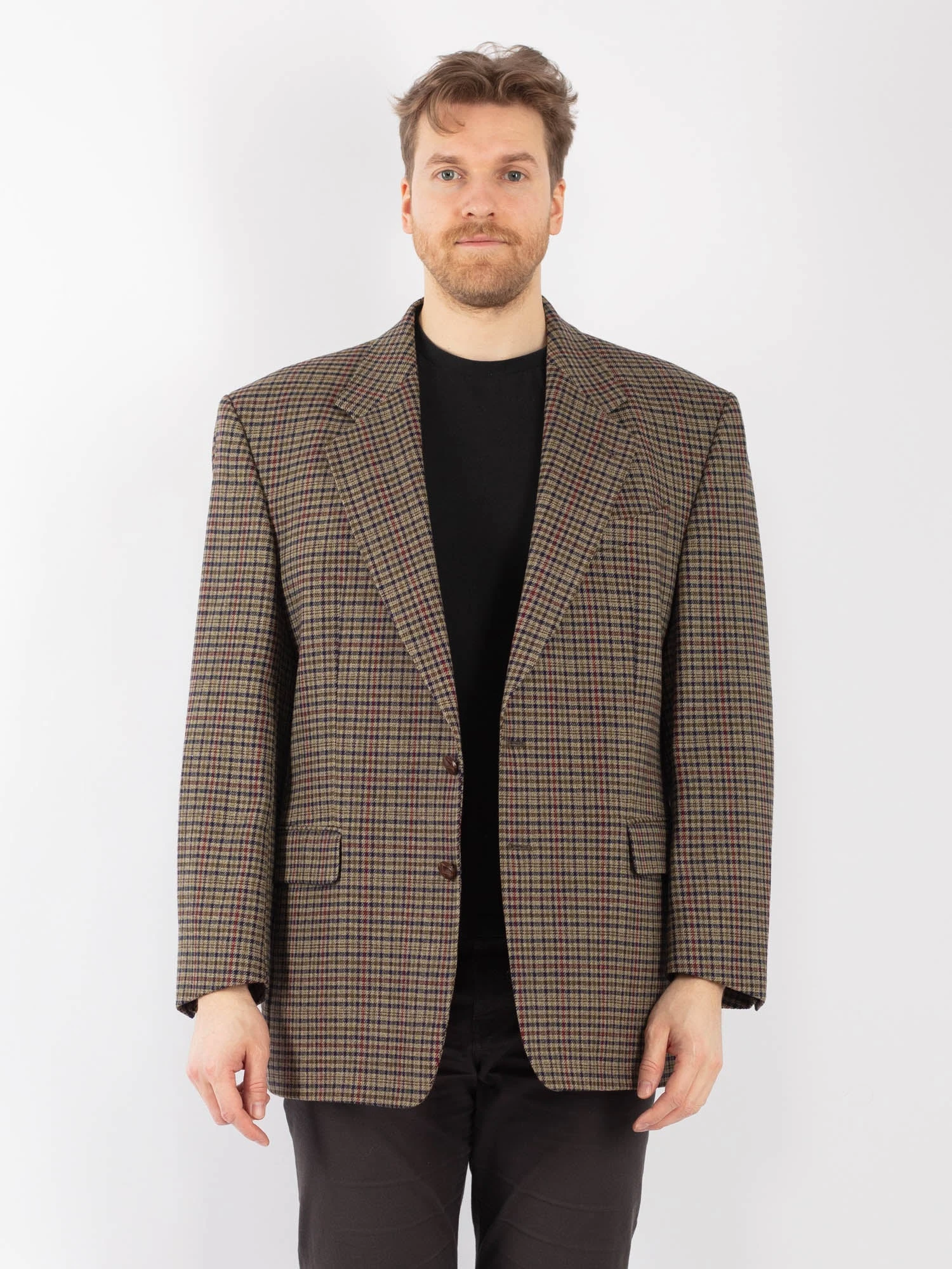 Multi Vintage 90’s Men Wool Blazer Jacket in Multi With Free Delivery