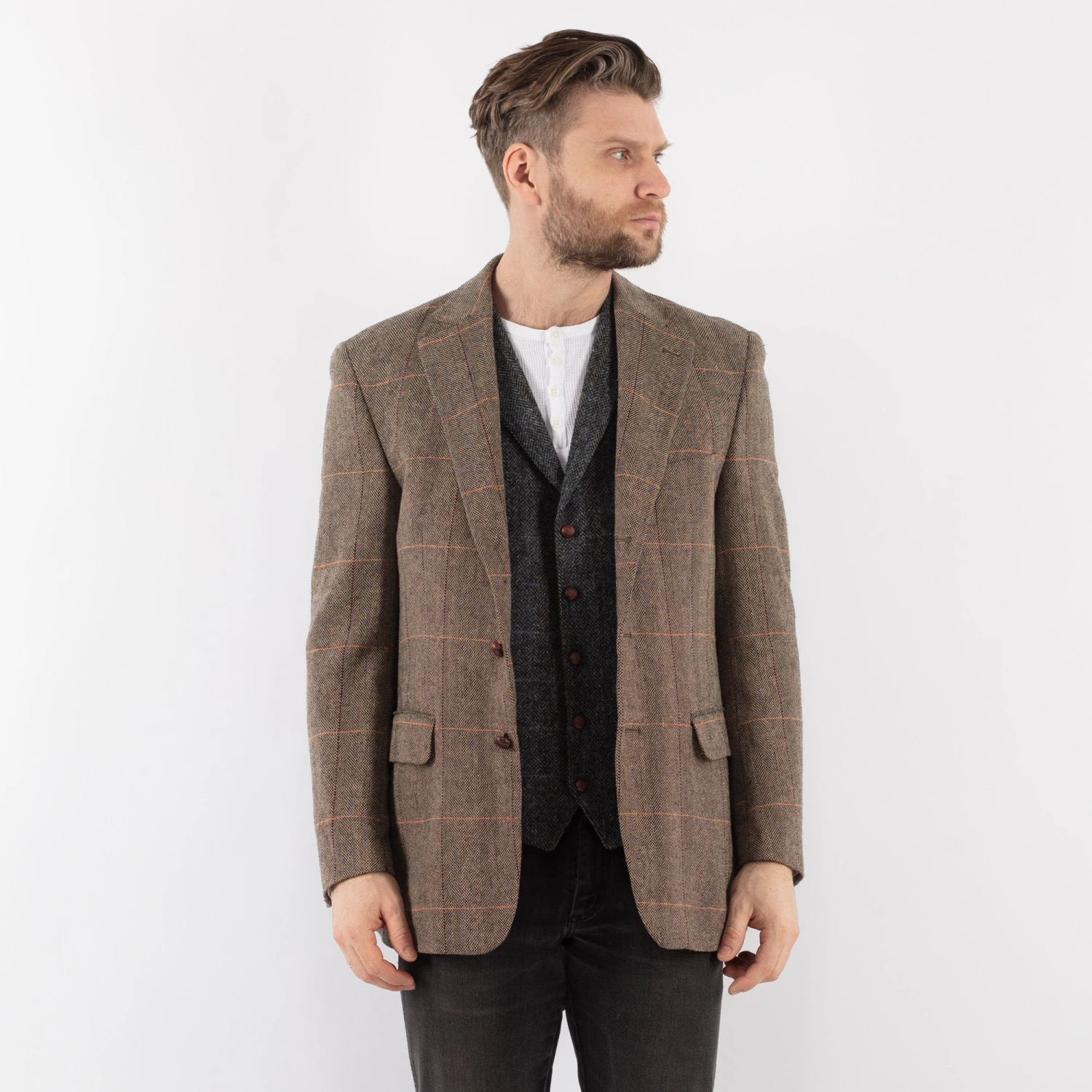 Gray Vintage 90’s Men Wool Blend Blazer Jacket in Gray With Free Delivery