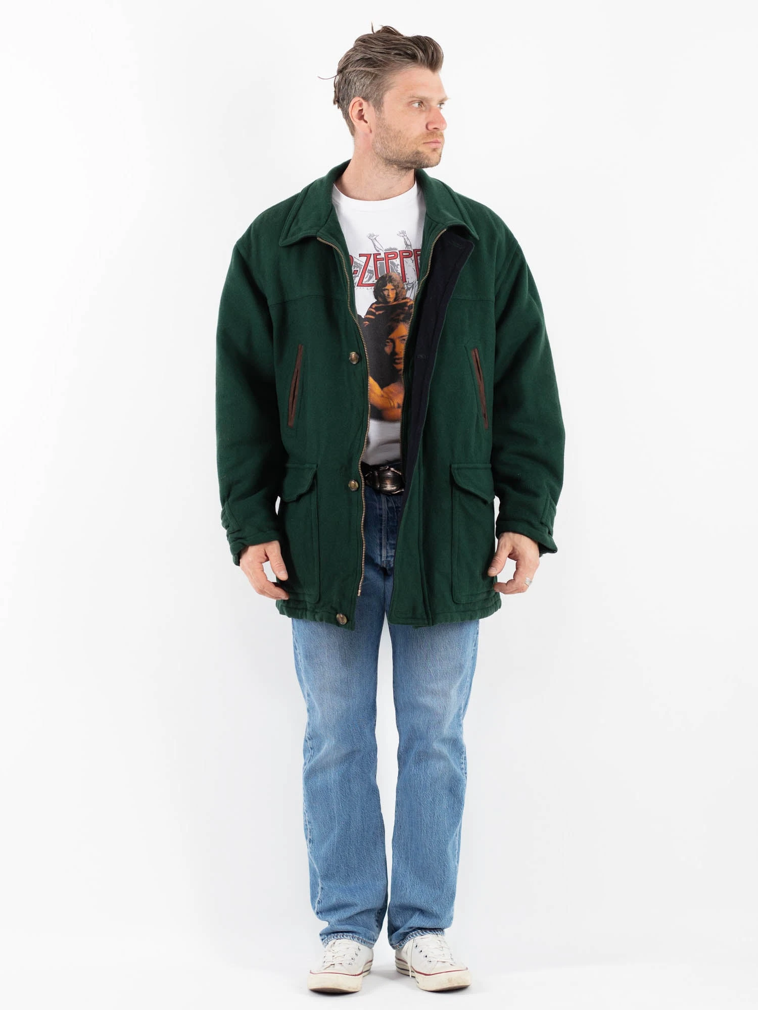 Green Vintage 90’s Men Wool Blend Jacket in Green With Free Delivery
