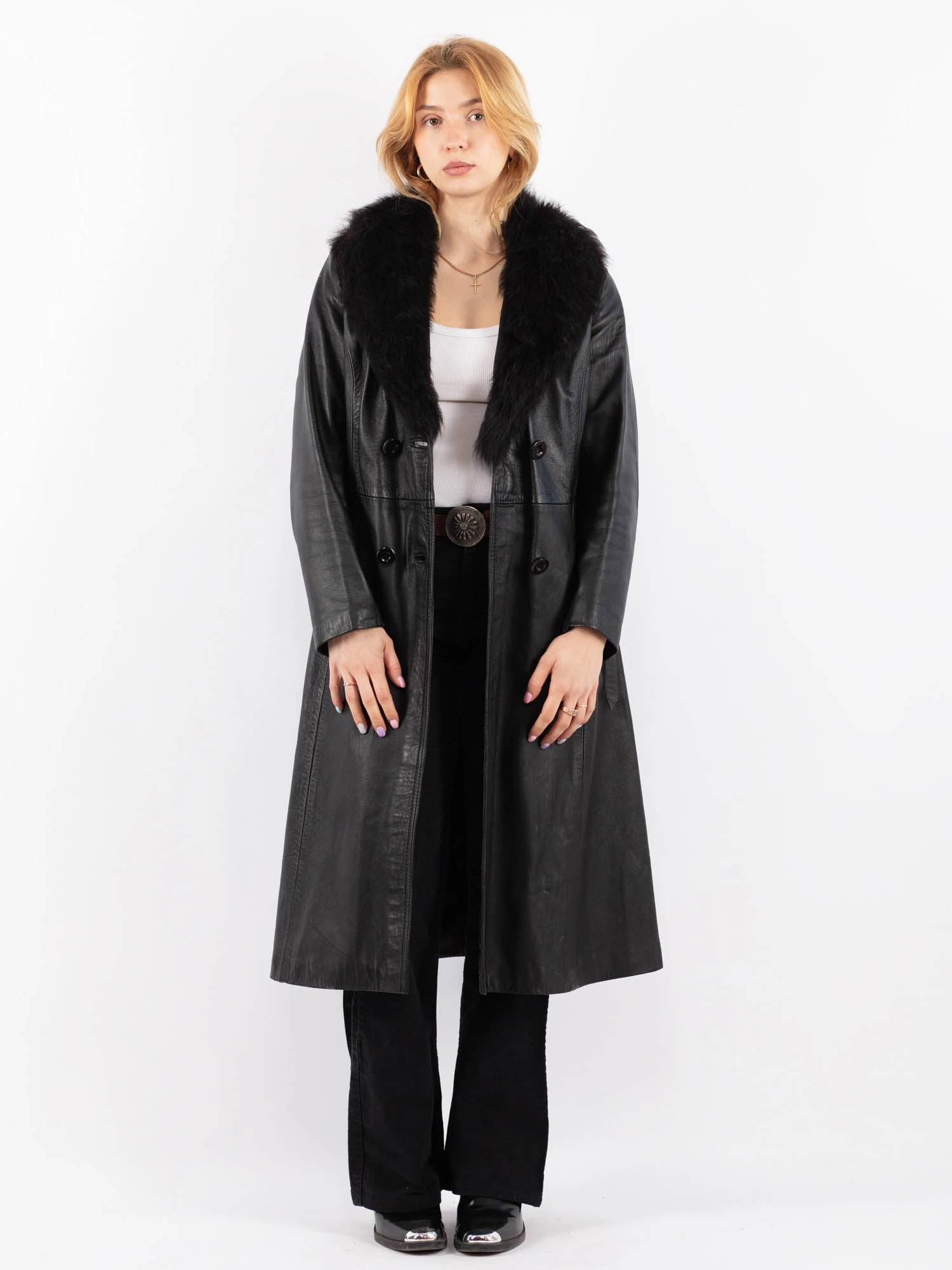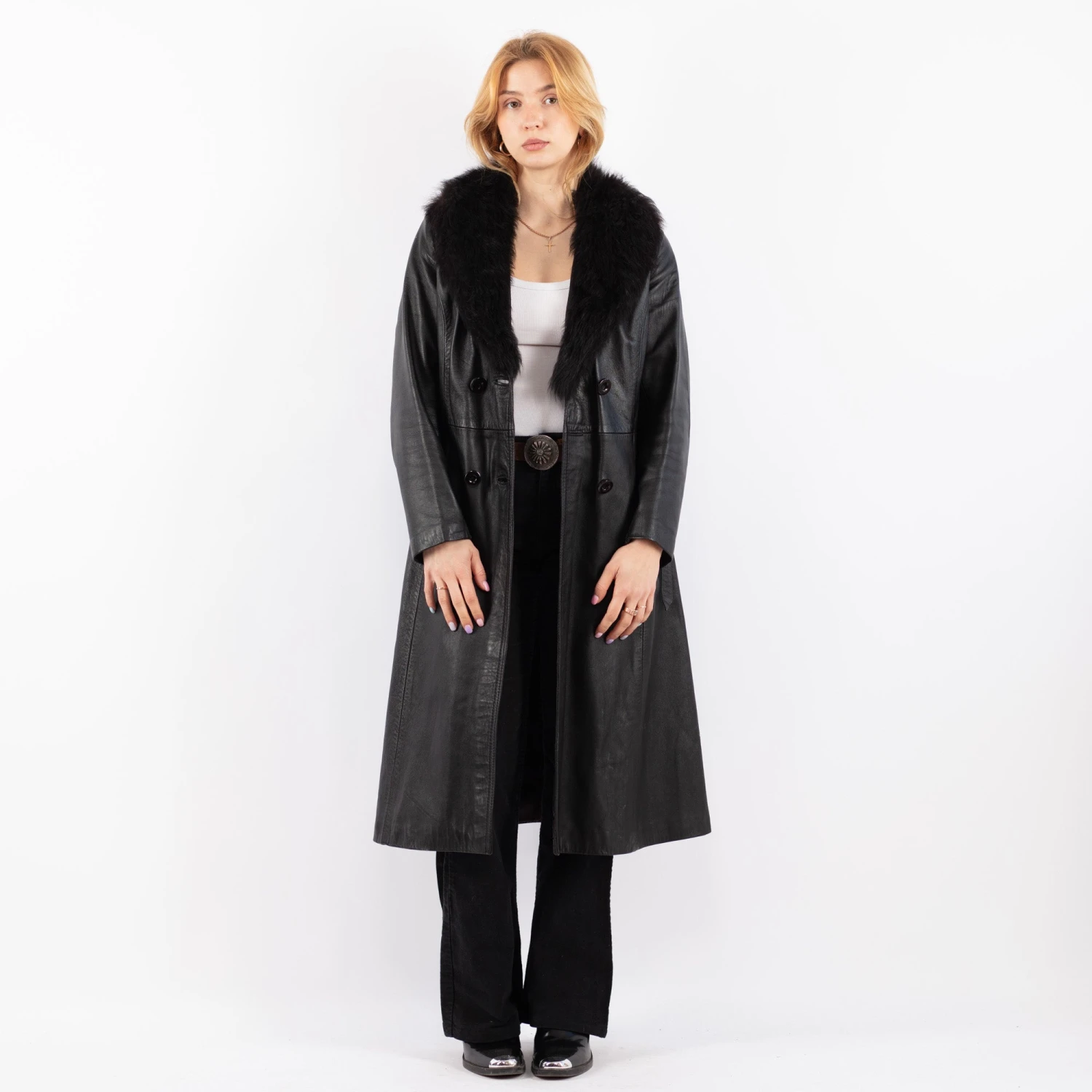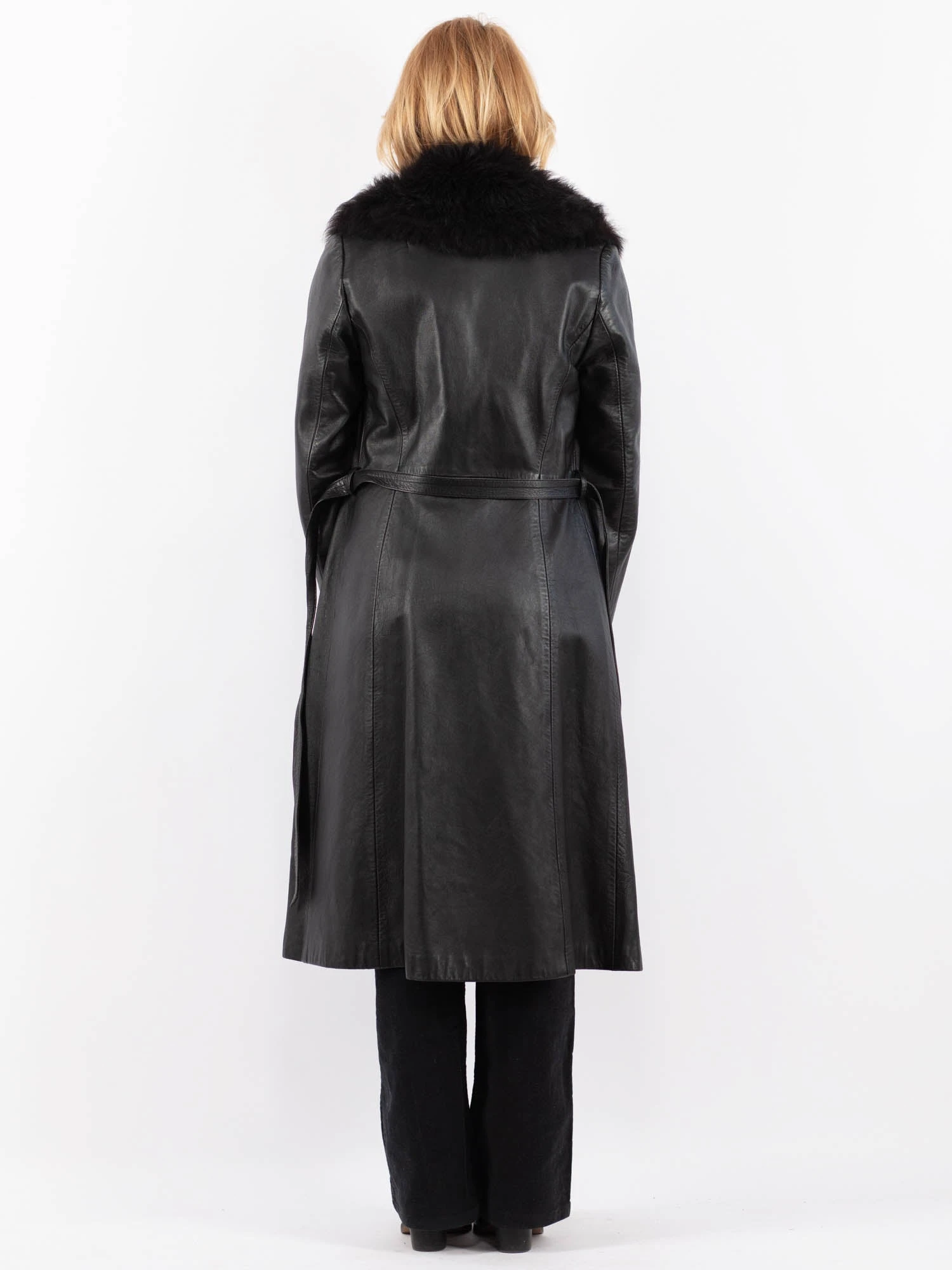 Black Vintage 90’s Penny Lane Leather Coat in Black With Free Delivery