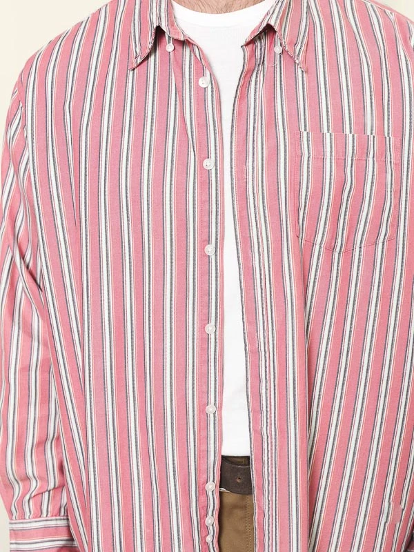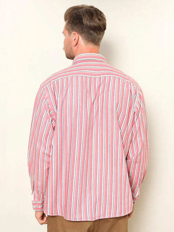 This is a very charming and comfortable vintage 90’s striped men’s shirt in pink-blue. Durable and functional garment. Made of cotton.