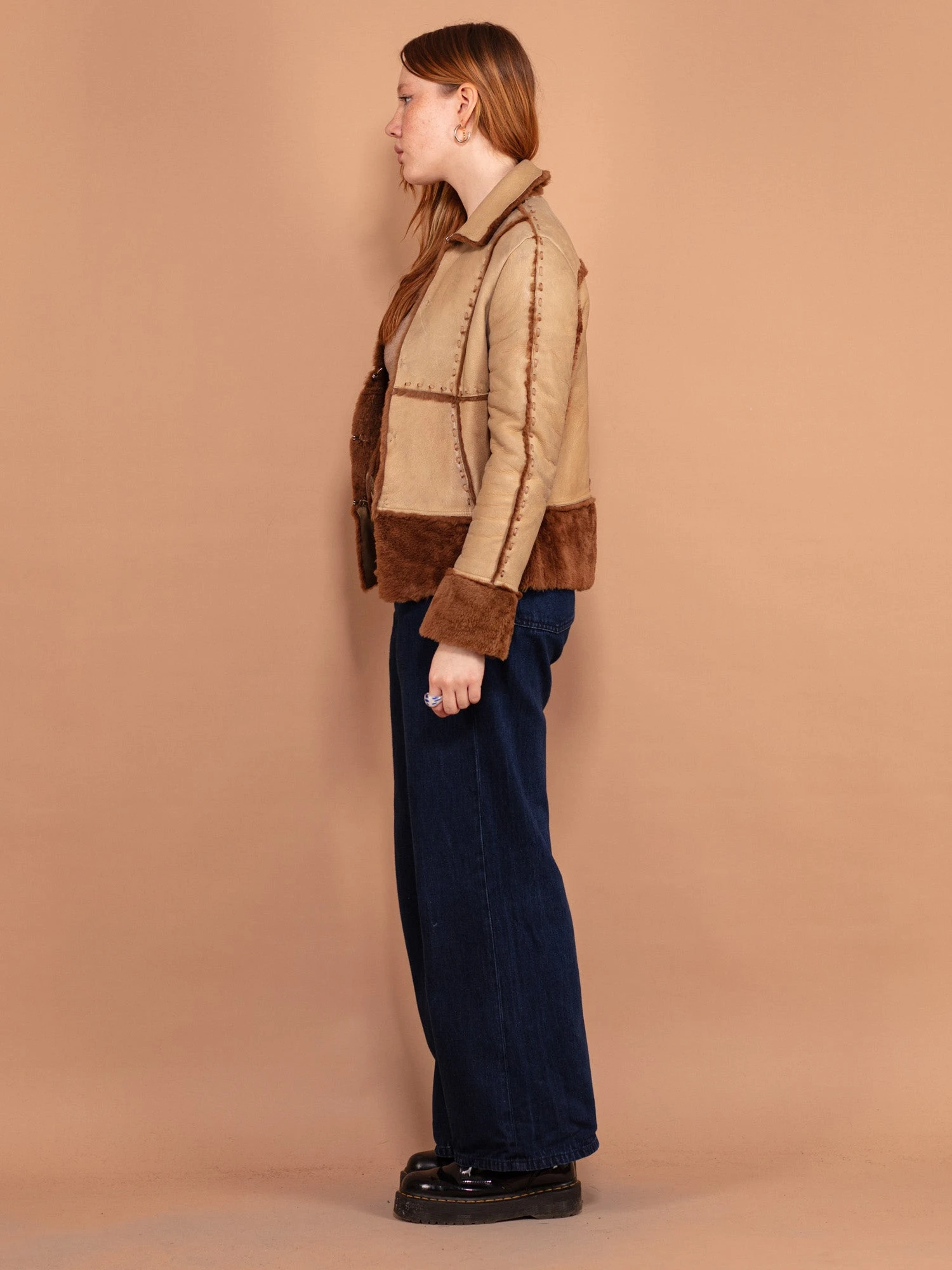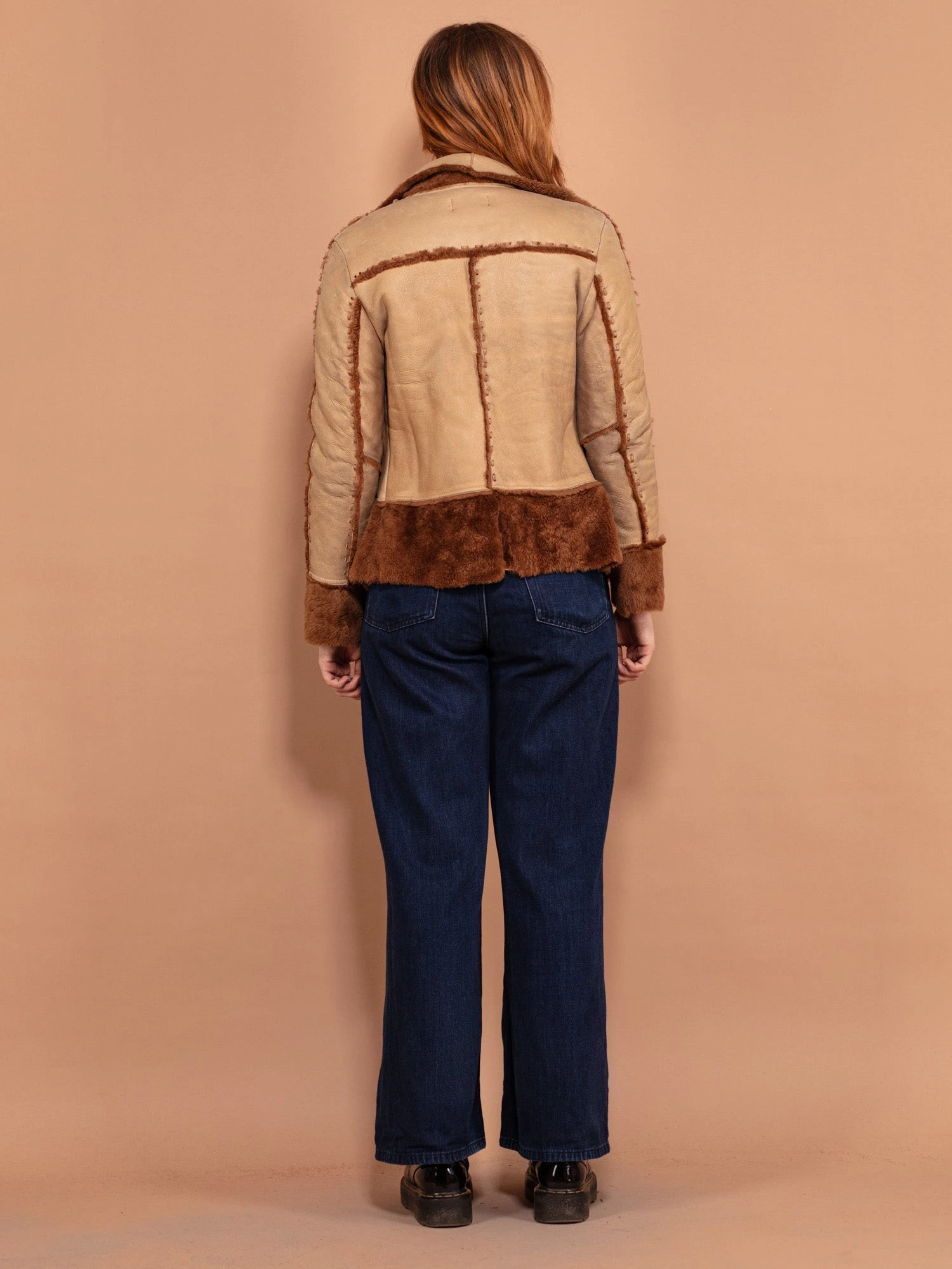 Vintage condition level: 6/10. Shows overall signs of wear – discoloration at both sleeves (the bottom of the sleeves has become darker); one hook is slightly different than the rest; leather lace is broken at one spot on the back (see the last photo for reference). See condition scale