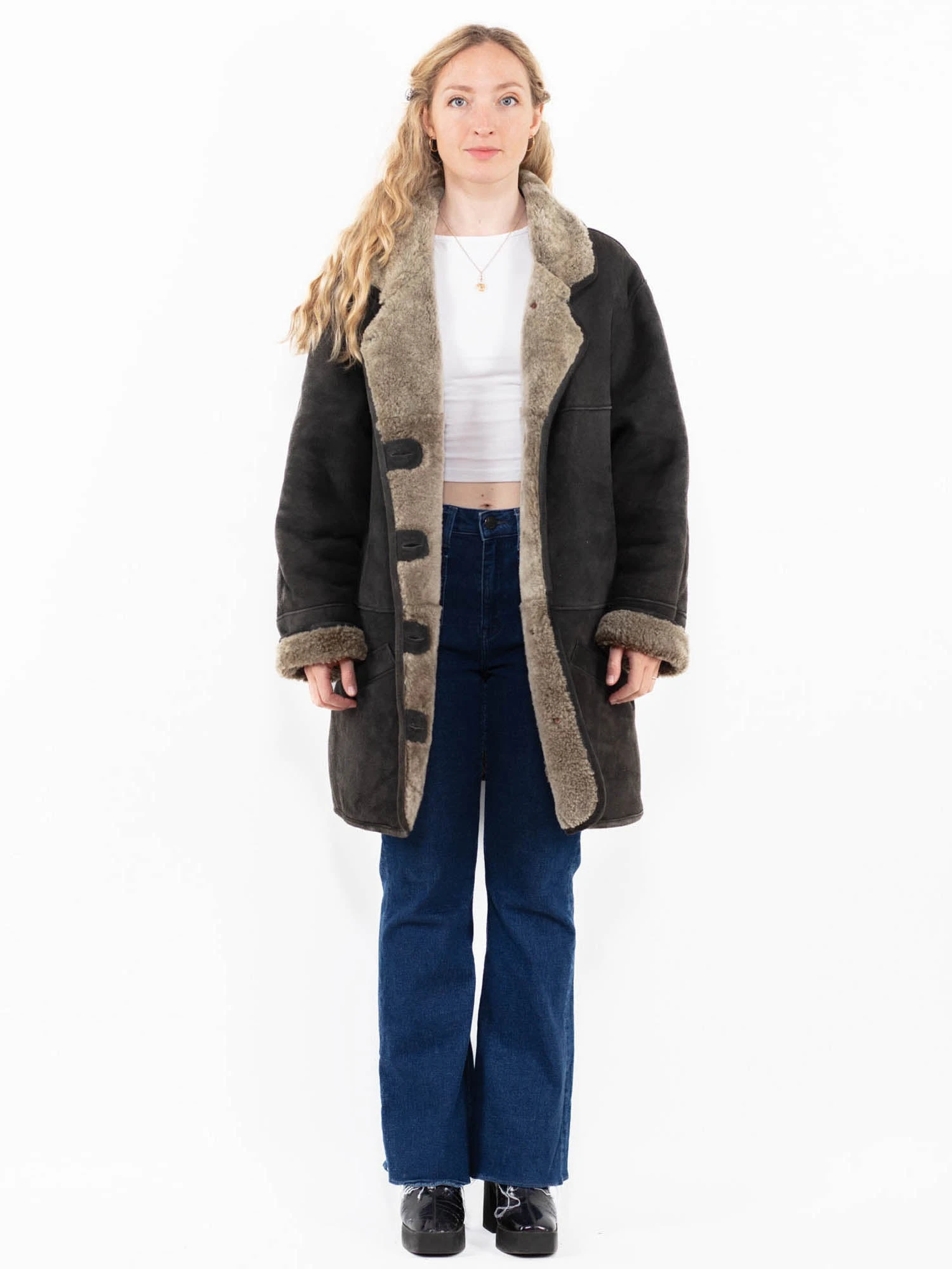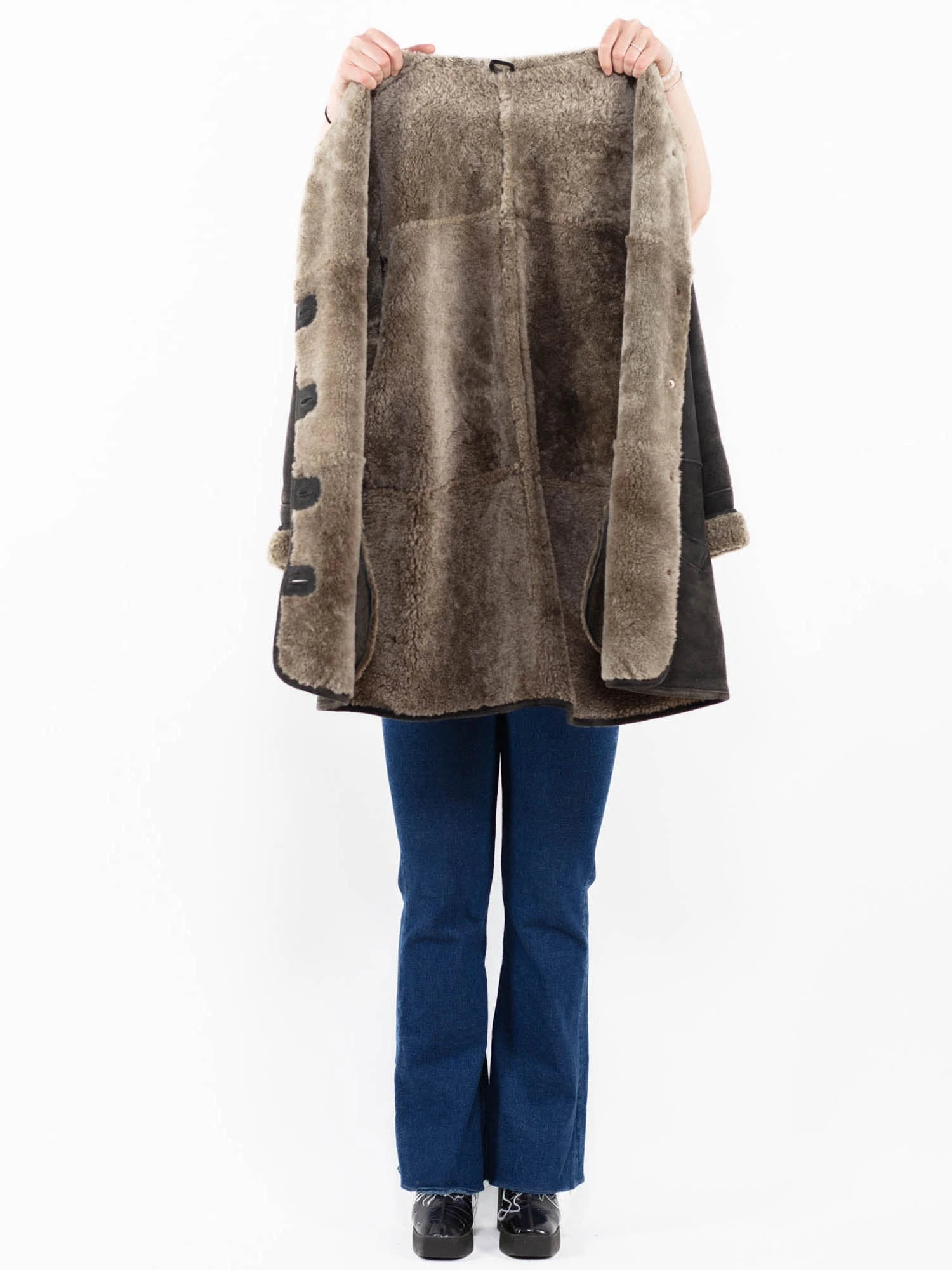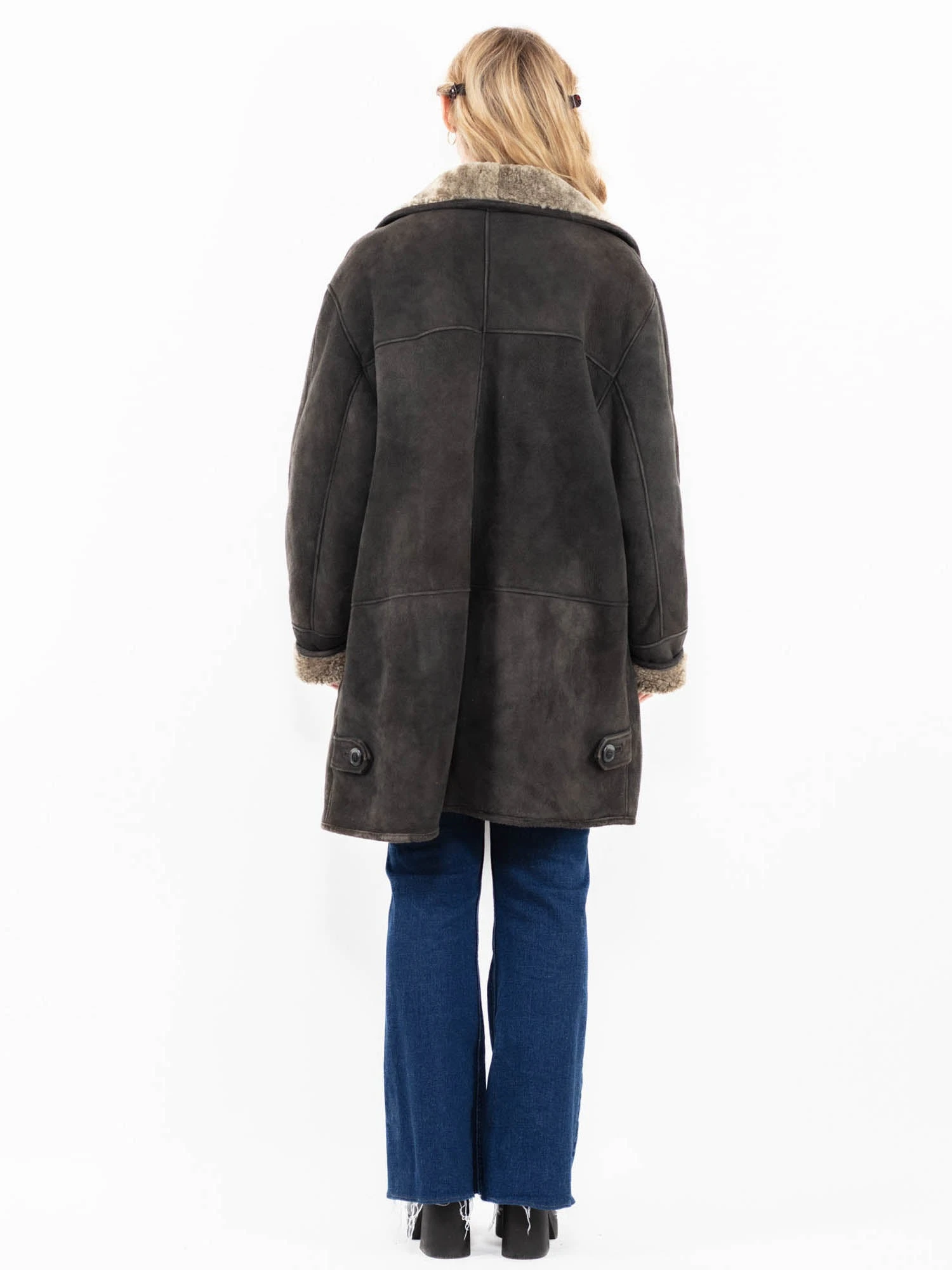 Gray Vintage 90’s Women Oversized Sheepskin Coat in Gray With Free Delivery