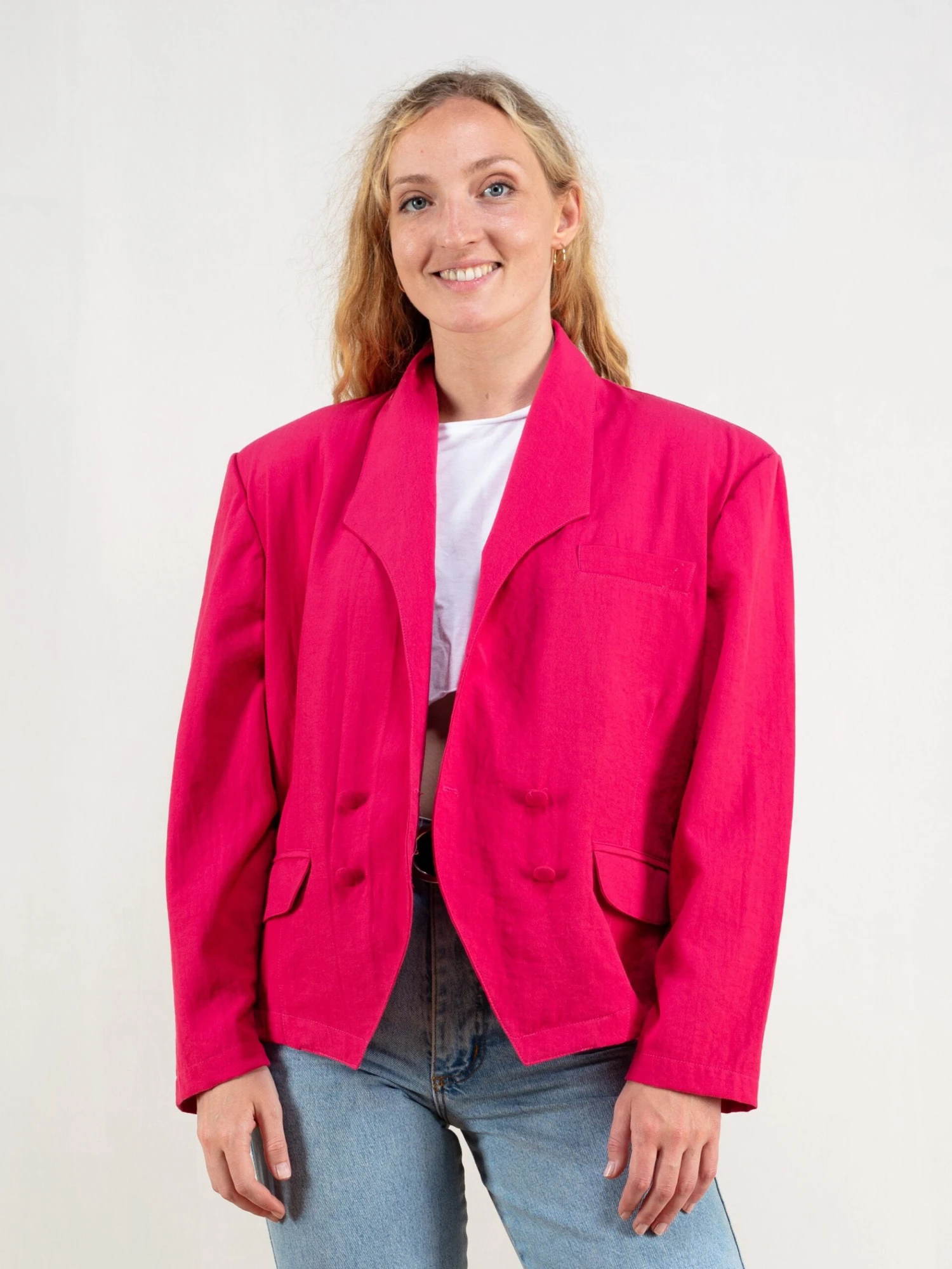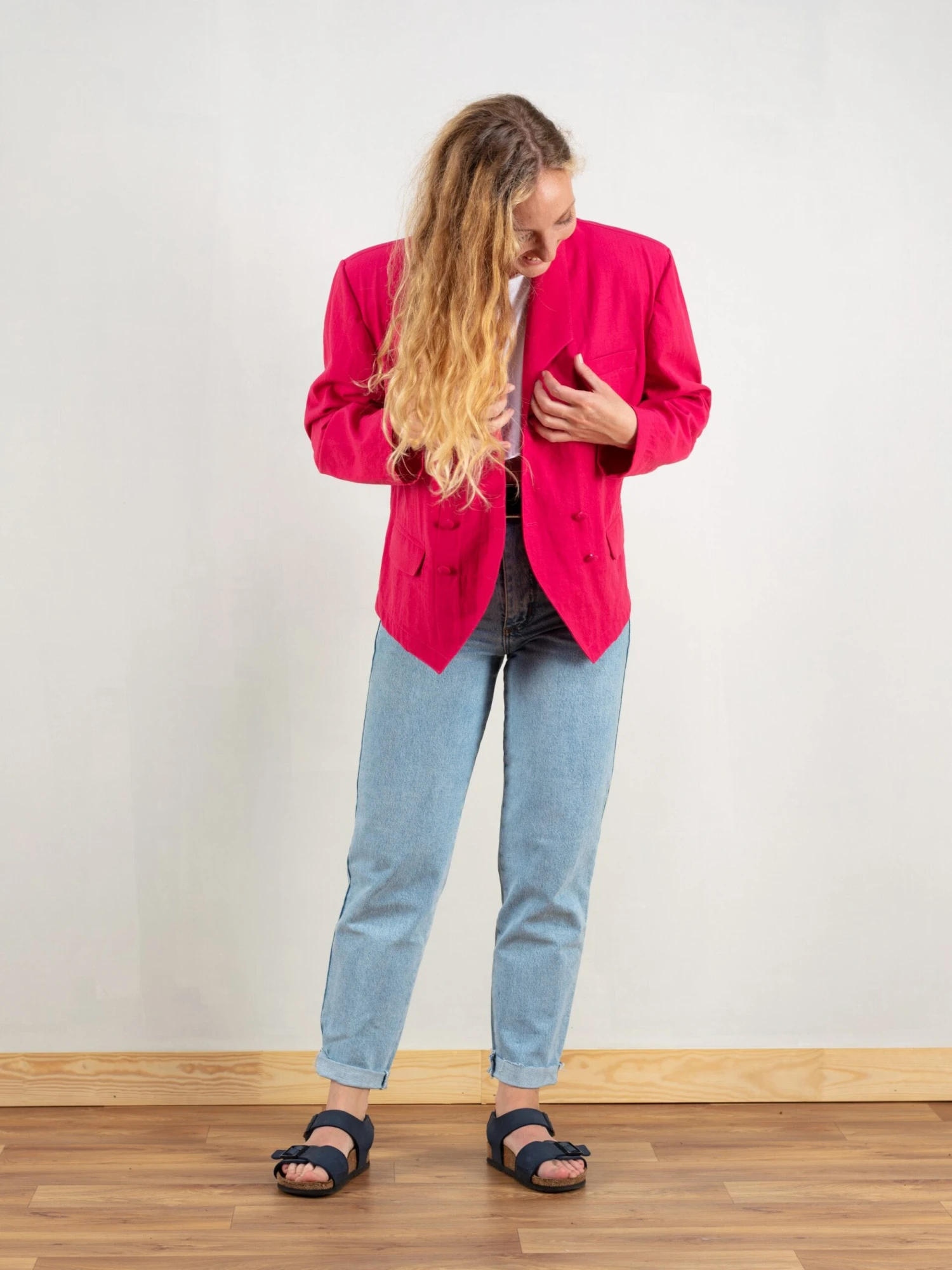 Formal yet something catchy – vintage 90’s pink blazer jacket. Made of cotton. Double-breasted fastening.
