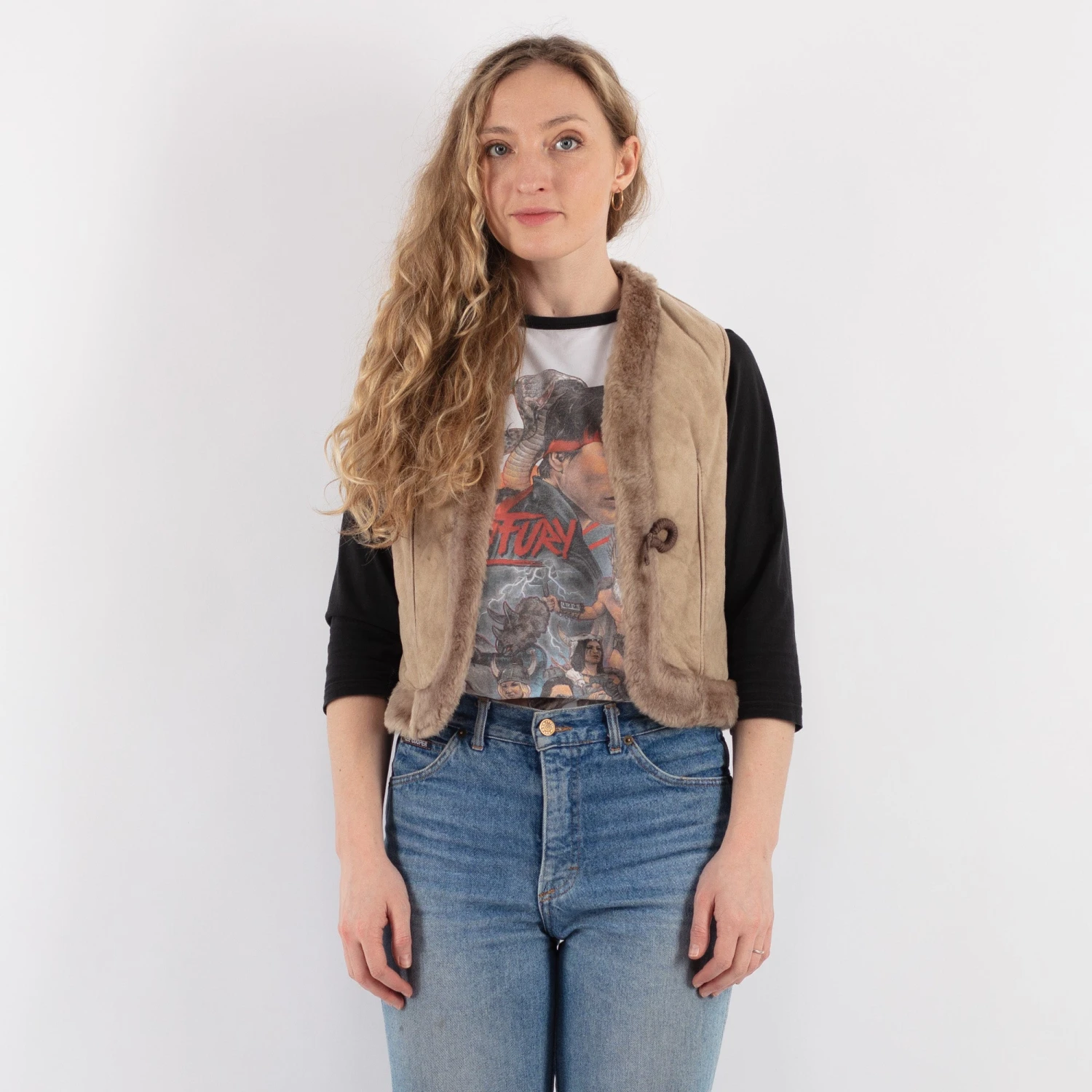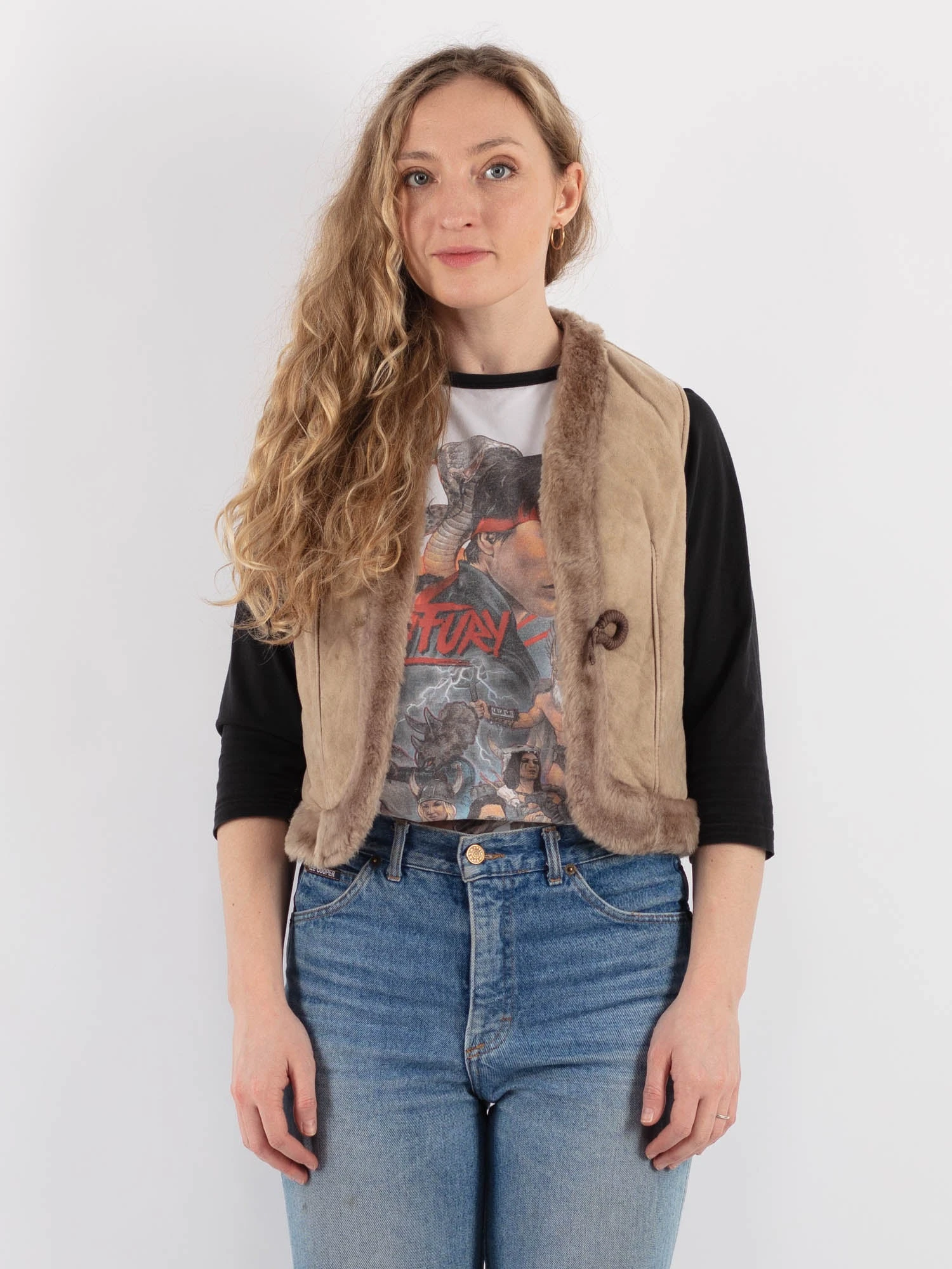 Beige Vintage 90’s Women Sheepskin Vest in Beige With Free Delivery