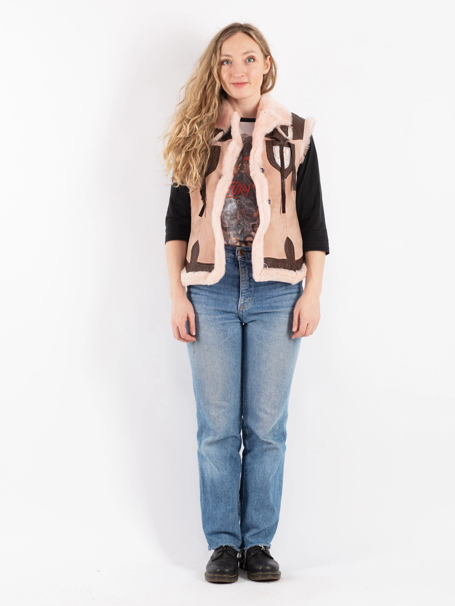 Pink Vintage 90’s Women Sheepskin Vest in Pink With Free Delivery