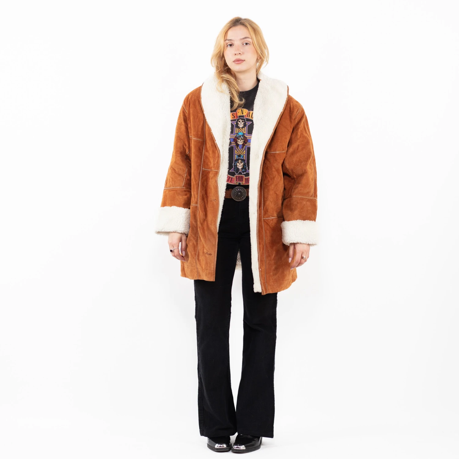 Brown Vintage 90’s Women Suede Sherpa Coat in Brown With Free Delivery