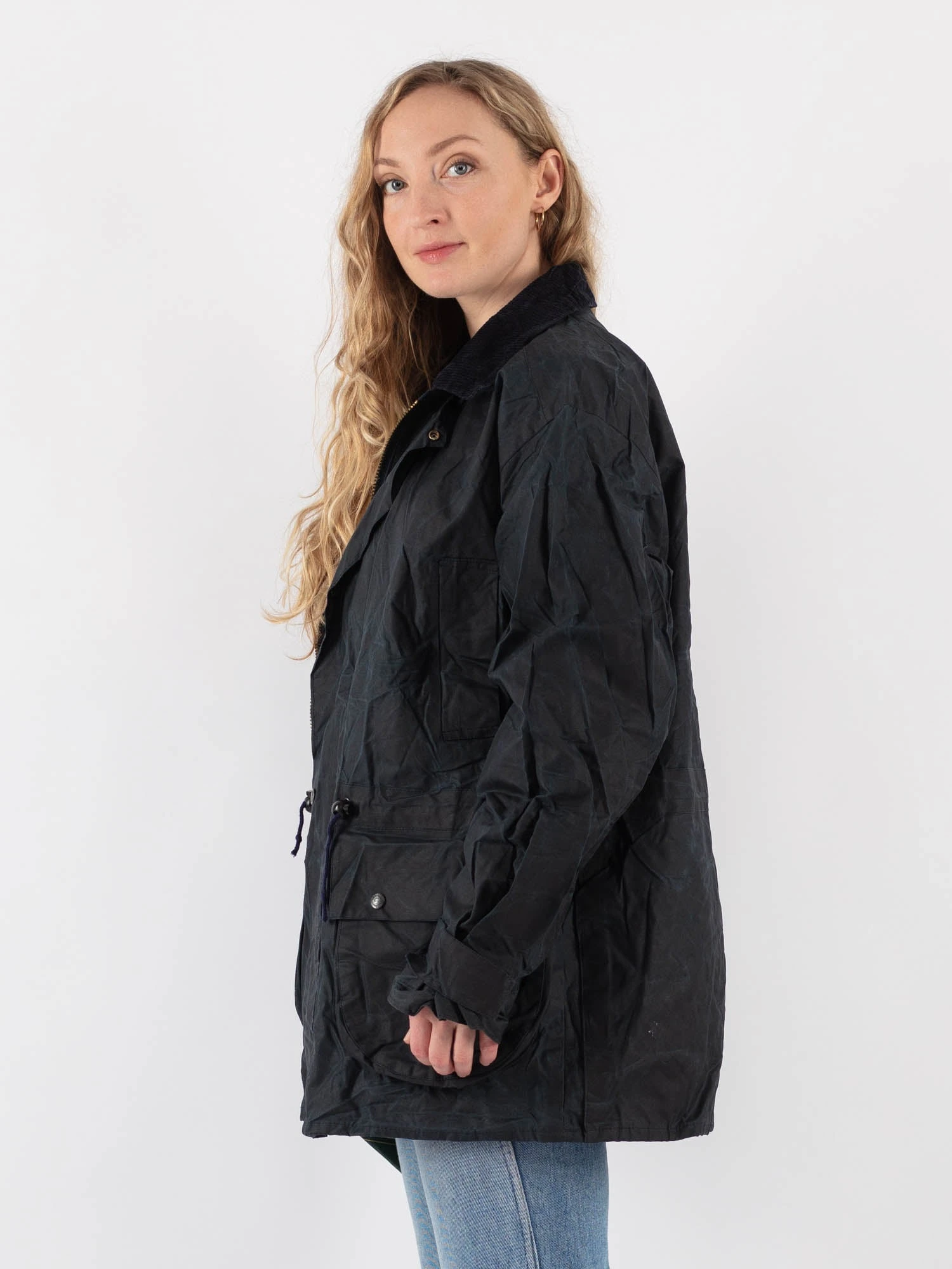 Blue Vintage 90’s Women Waxed Canvas Jacket in Blue With Free Delivery